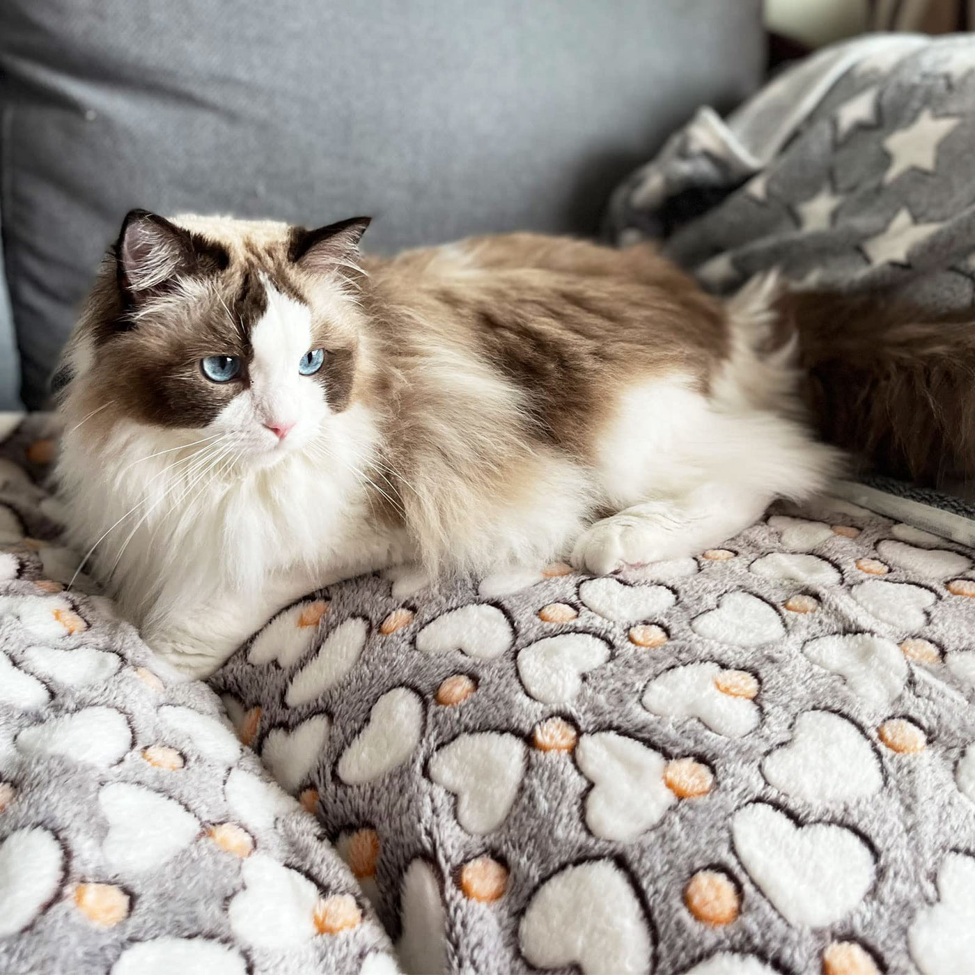 Q: Is the blanket suitable for both dogs and cats?A: Yes, the fluffy fleece pet blanket is designed for small dogs, puppies, and fluffy cats, making it versatile for various pets.