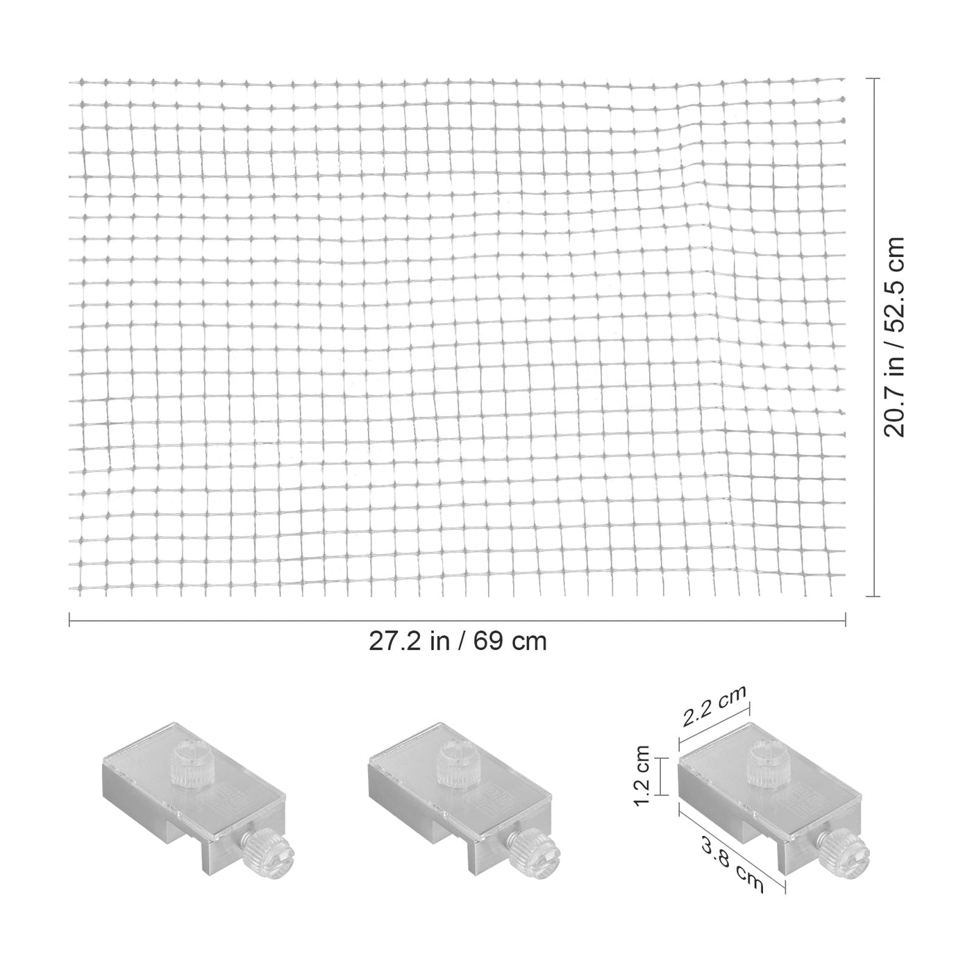 FeaturesColor:TransparentMaterial:, PlasticSize(Net):70.00X53.00X0.10cm/27.51X20.83X0.04inSize(Bracket):5.50X3.00X2.50cm/2.16X1.18X0.98inKeep Your Fish Safe with Our Easy-to-Use -Jump Net - Quick and Simple Installation - DIY Multiple Sizes for Your Convenience - Essential for Fish Keeping and Preventing Escapes - Versatile Design for Use as Air Mesh Cover, Tank Divider, and More - Wide Range of Uses Including Protection from Other Animals in Outdoor TanksPackage Including1 x Fish Tank Net5 x Brackets