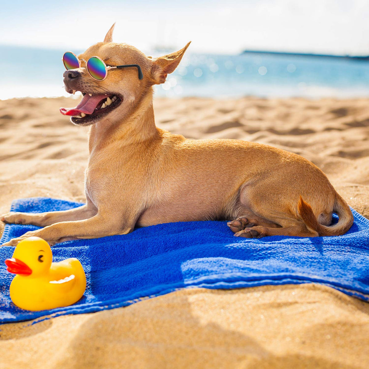 10 Piece pet sunglasses round metal pet sunglasses classic retro pet sunglasses cute and funny pet sunglasses dog cat cosplay party costume photo propsDurable to use: The sunglasses frame is made of metal and spectacle lens are made of resin, which make it durable to use, not easy to get scratch, lasting for a long time. Meanwhile, the pet glasses are lightweight and comfortable for your pet to wear. Great choices for your pet costume. Wide application: The pet sunglasses is suitable for most small dogs or cats to wear. You can dress up your pet as daily wear for a fabulous looking, or use it for a nice photo prop or performance wear. Specifications: Material: metal, resin Size: glasses width: 3.15 inch, lens diameter: 1.18 inch, temple length: 2.95 inchColor: as the pictures showPackage includes: 10 x Pet sunglasses