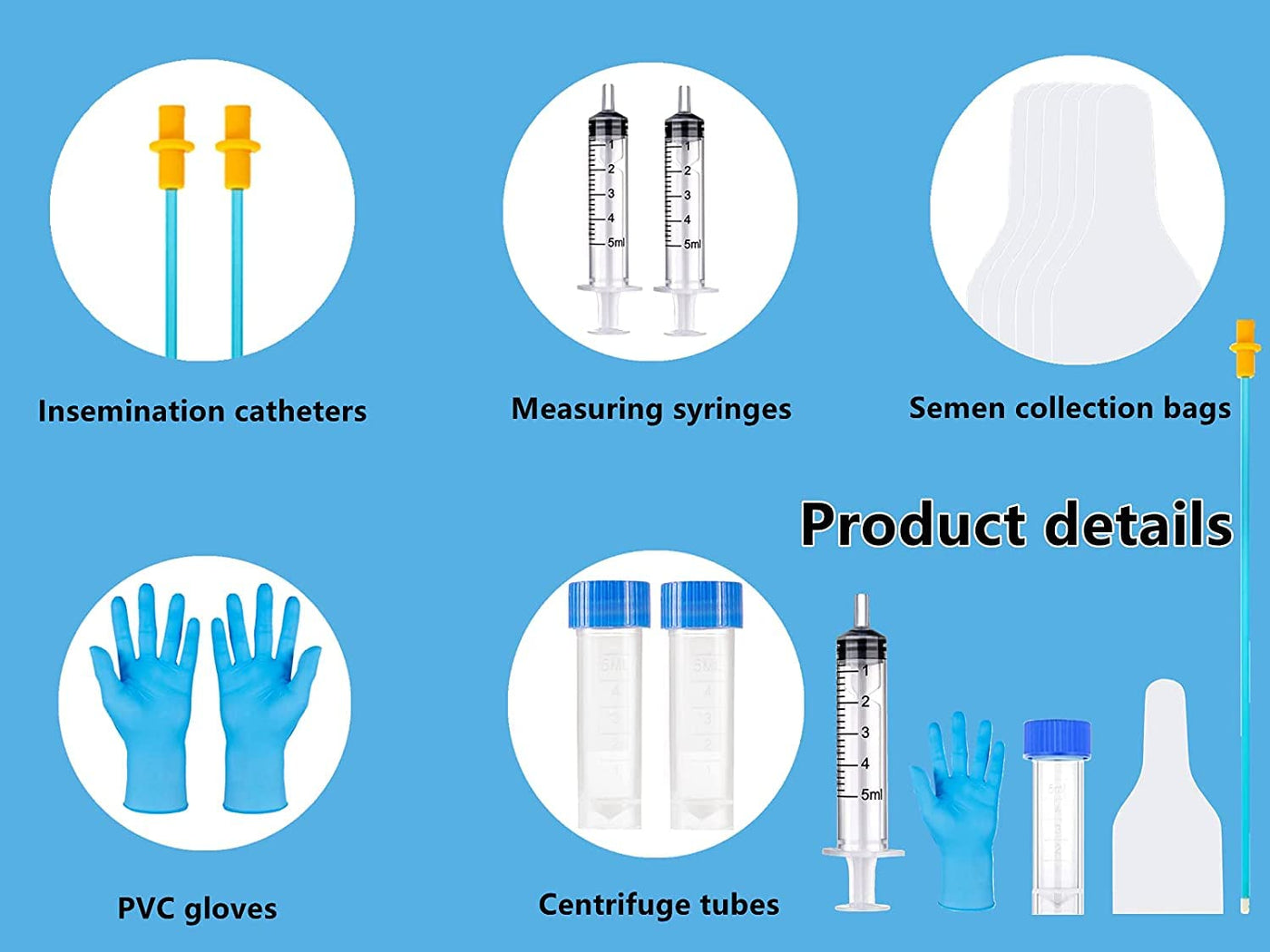 og AI Artificial Insemination Breeding Kit Dog insemination kit includes AI rods tube*10, centrifuge Tubes*10,Dog Semen collection Bag*10, Syringes(5ml)*10, Disposable gloves*10 All these are dog breeding supplies for artificial insemination of dogs and are easy to use og Fertilization catheter Made of high quality material,it is durable, smooth and beautiful, the 360-degree bend does not break easily There are three specifications to choose from, It is suitable for most dogs and is a good helper for your pet breeding centrifuge Tubesade of medical grade polypropylene, plastic centrifuge has no pyrogen, smooth surface and firm nut It is produced under high temperature and high pressure (up to 122 A c), with a clear label and standard capacity og Semen collection BagThe dog semen collection cones is made of medical material, Independent packaging, soft and firm, durable and not leaking, these are transparent, surface matter design does not slip, more convenient to observe when using 5ml SyringesIndividually sealed packaging , made of high-quality plastic, durable