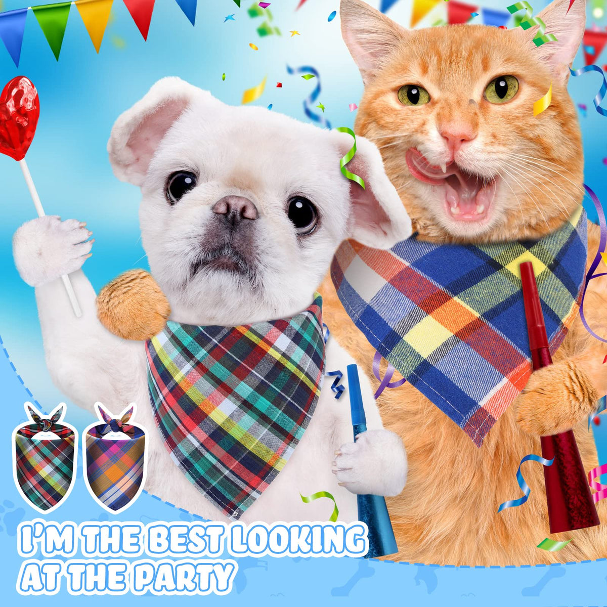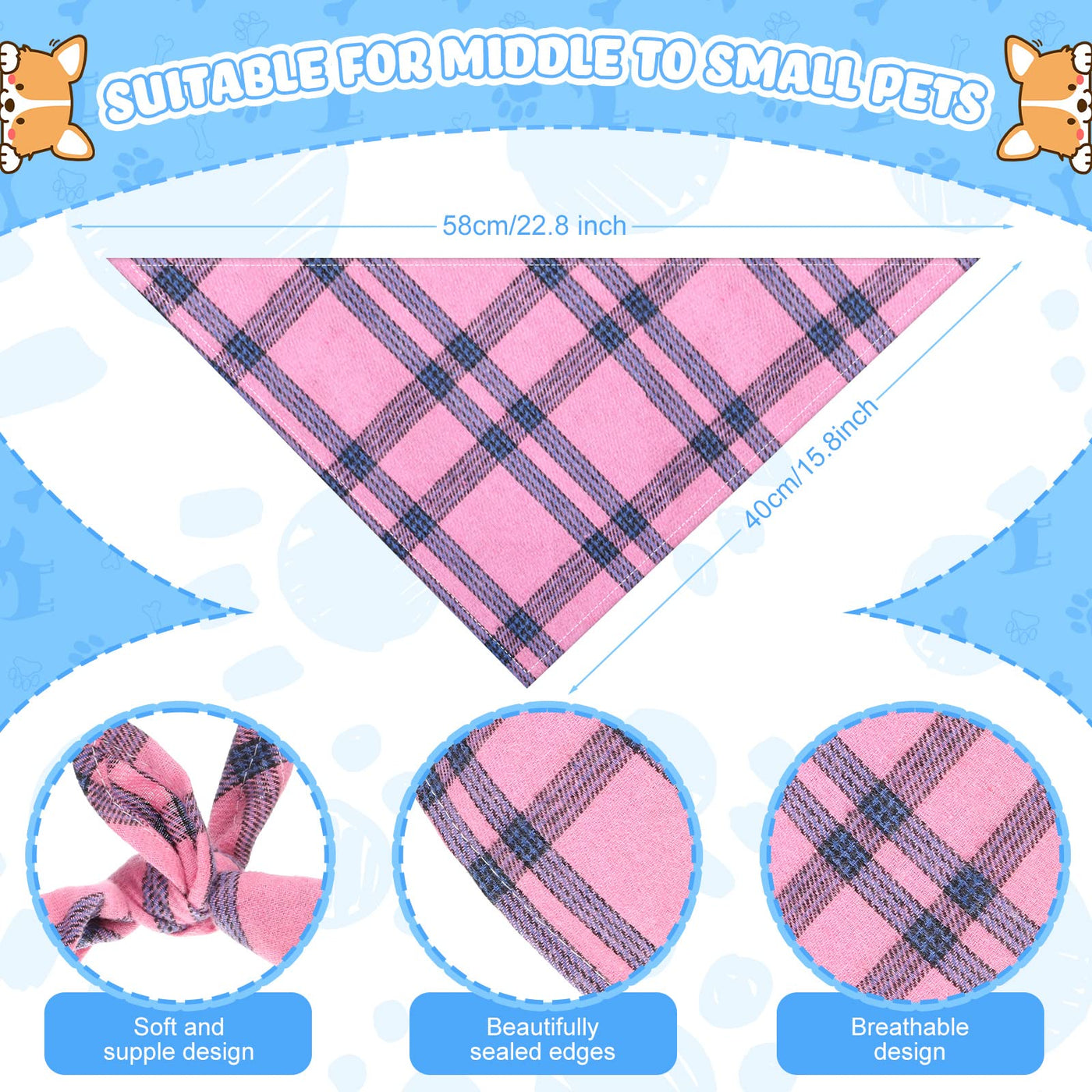 100 Pcs Bulk Dog Bandanas Plaid Dog Scarf Cute Pet Bandanas Washable Cotton Puppy Cat Bandanas Comfortable Dog Bib Kerchief For