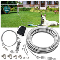 Dog Tie Out Aerial Run Trolley System - Heavy Duty 100Ft Dog Aerial Run Cable With 10Ft Pulley Runner Line Holds 100Lbs Of Dogs For Yard Camping Outdoor Why Choose Our Dog Tie Out Aerial Run Trolley System: - The Aerial Run Trolley System Comes With A 100 Ft Dog Tie Out Cable And A 10Ft Dog Runner Line, Which Are Vinyl Covered To Protect From Rain And Rust, Durable And Long Lasting For The Dogs Up To 100 Lbs. - Turnbuckle Is Included To Avoid Sagging And Help Pulley Run Smoothly Along The Cable. - Designed With A 360 Degree Swivel Carabiner Clasps To Prevent Dog Cables To Be Tangled. - Perfect For Yard, Camping Or Other Environments You Need A Reliable Dog Tie Out Aerial Run Trolley System. - Easy To Carry, Bonus A Bag Is Included For Easy Carrying Or Storage. - Easy To Install, Also A Detailed Installation Instructions Package Included: 1 X 100Ft Heavy Duty Dog Aerial Run Cable With Turn-Buckle 1 X 10Ft Runner Line With Shock Absorbing Spring 2 X Protective Stopper 2 X Screw Hook 2 X Large Clamp 1 X Pulley 1 X Carry Bag Installation Instruction: 1.Select Two Points To Secure The Screw Hooks And Ensure The Distance Between Them Is Less Than The Aerial Cable. 2.Locate Both Hooks At The Same Height, And High Enough To Allow A Person To Easily Walk Under It. 3.Hang The Turnbuckle On The Open Eye Screw Hook And Adjust It By Rotating The Center Until Fully Entended. 4.Slide The Following Items Onto The Unfinished End Of The Cable In This Order As Above Picture Shows: Protective Stopper--Pulley--Protective Stopper--Two Wire Rope Clips. 5.Snap The Cable Lead With Shock Absorbing Spring On To The Pulley And Your Dog Collar.