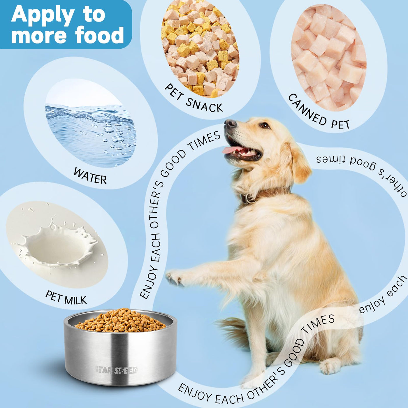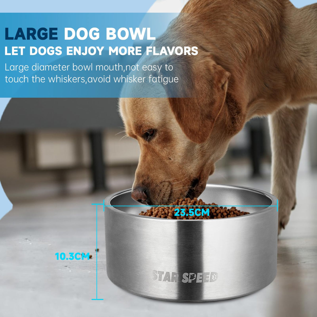 StarSpeed dog bowls - Non-slip dog water bowls for puppies, dogs, cats.Great for water, kibble, wet food, meat, or treats.StarSpeed - The dog bowl holds 100 ounces of enjoyment.Big enough for all breeds.18/8 STAINLESS STEEL -Rust resistant,Puncture resistant,no more going through flimsy plastic bowls.NON-SLIP & SPILL-Equipped with a durable bottom grip.Won t budge, no matter how enthusiastically they eat or drink.Great for indoor and outdoor.Easy to clean .