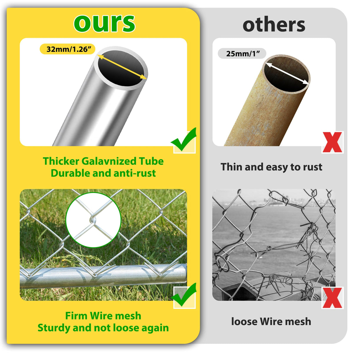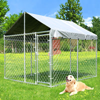 ?Multi-Functional Roof Cover?The Outdoor Dog Crate Is Equipped With A Waterproof And Uv-Proof Cover.It Can Not Only Block Direct Sunlight On Sunny Days,But Also Block The Direct Invasion Of Rainwater And Wind On Rainy Or Windy Days,Preventing Dogs From Getting Sick Due To Dampness And Cold. ?Safe & Secure Design? With Safe Door Lock, This Dog Pen Can Effectively Prevent Dogs From Accidentally Escaping And Help Prevent Other Animals Or Strangers From Entering The Dog Cage, Especially When The Owner Is Not At Home. It Ensures The Safety Of The Dog And Reduces The Concerns That The Owner May Face. ?Spacious Space For Dogs?The Size Of Our Large Dog Kennel Are 120'' 120'' 78.74''. It Can Provide A Spacious Space For Your Beloved Dog, Allowing Your Lovely Dogs To Walk And Stretch Freely, Which Is Very Important For The Physical And Mental Health Of Dogs. ?High Quality & Anti-Rust?The Outdoor Dog Cage Is Made Of 1.25'' Galvanized Metal Tube And 2.45 Mm Thicker Steel Wire Mesh,Which Is Sturdy And Durable,Extending The Life Of Outdoor Kennels.The Edges Of The Mesh Are Wrapped Together In A Design That Both Makes The Structure Stronger And Prevents The Mesh From Loosening. ?Easy Installation&Excellent Service?The Dog Kennel Outdoor With Roof Comes With Detailed Instructions And Video Guides, So You Can Assemble It Easily. If You Have Any Problem With Dog Cage, Please Do Not Hesitate To Contact Us And We'Ll Offer You An Ideal Resolution As Soon As Possible.