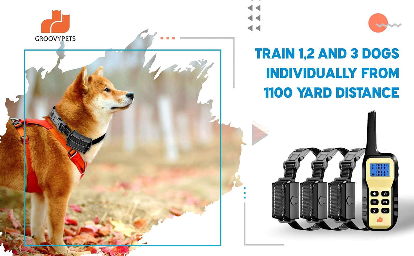 Q: How far can the remote control reach for training my dogs?A: The remote control for this dog training collar has an impressive range of up to 1100 yards, allowing you to train your dogs effectively from a distance.