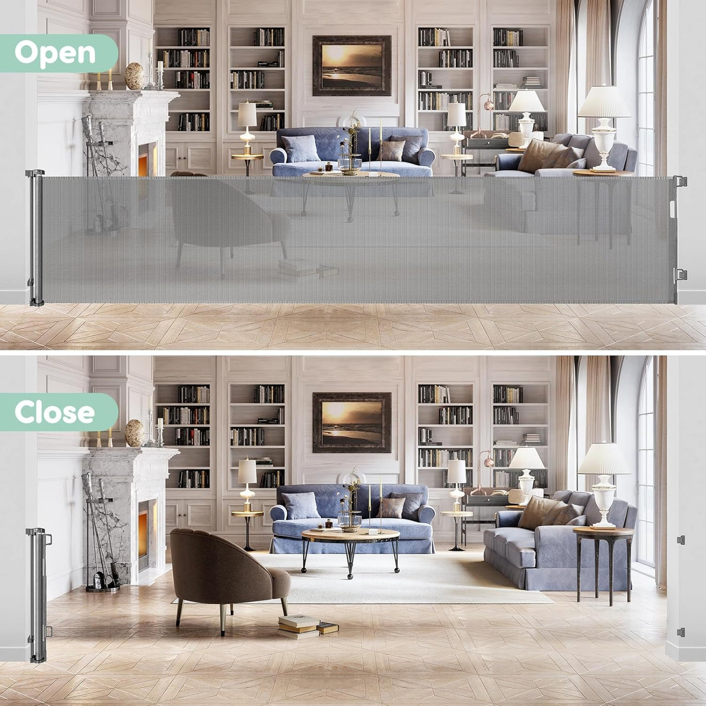 115 Inch Retractable Pet Gate for Dogs & Puppies - Extra Wide & Long Baby & Child Safety Gate