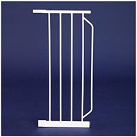 Q: What are the dimensions of the extension kit?A: The Carlson extension kit measures 12 inches in width and extends the height of your pet gate to 31 inches. This allows it to cover wider openings while maintaining a secure barrier.