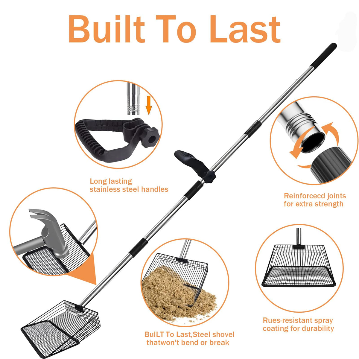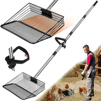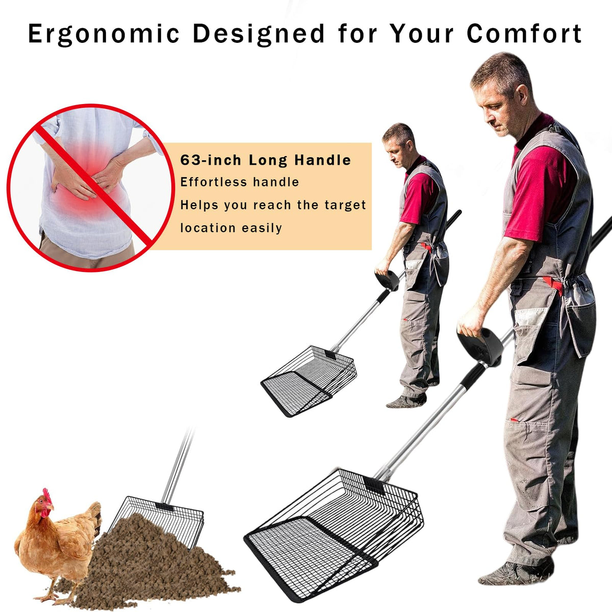 12 Metal Chicken Poop Scooper Rake for Sand with 24 to 68 Handle, Adjustable Chicken Coop Scoop for Poop, Wide 10 Poop Shovel