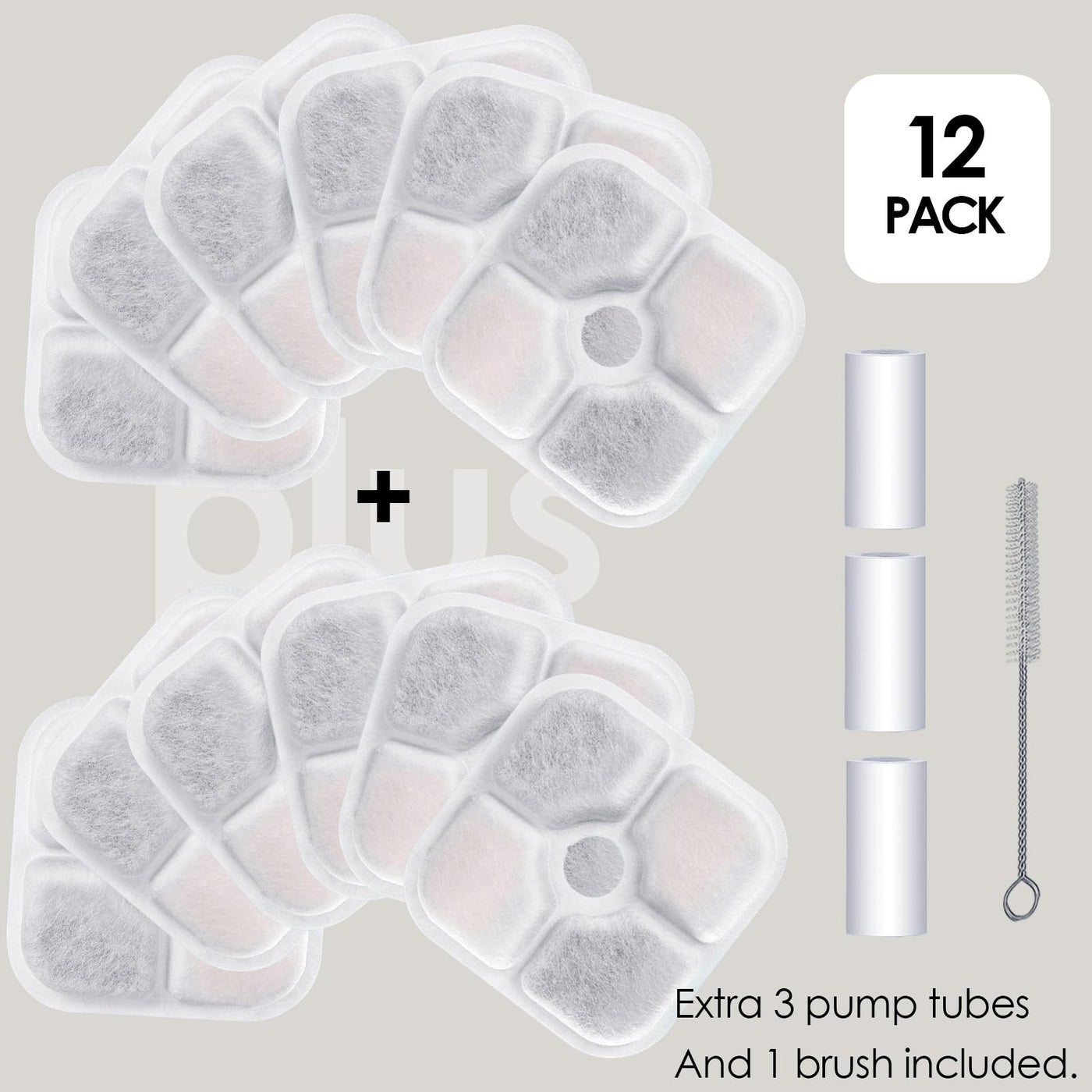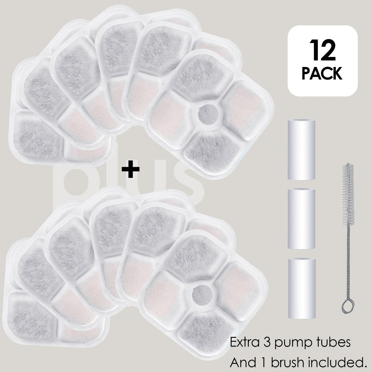 12-Pack Cat Water Fountain Filter Compatible With Catit Pixi Water Fountain Filter Replacement Triple Action Water Filter, 3 Pum