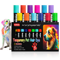 12Pcs Dog Color Dye Pack, Add Vibrant Colors To Your Furry Friend For Fun Bonding Moments Dog Safe Paint Crafted With Pet-Friendly, Animal Safe Materials That Are Non-Toxic, So They Won'T Damage Your Puppy Or Kitten'S Hair Dog Hair Dye Is Temporary,Non-Permanent,Water-Soluble,Washable And Quick Drying, Color Dye Can Last A Few Days To Weeks, It Won'T Rub Off On Anything In The House And Can Be Washed Right Out In A Bath If You Want The Color Off Sooner Pet Safe Paint Pens(Markers, Crayons, Chalk Pens)Suit For Any Pet Hair Like Dog, Puppy, Cat, Guinea Pig, Chick,Horse,Cow,Bunny, Hamster,Ferrets, Parrot Birds,Rabbit, Goat, And Sheep Dog Hair Color Is 100% Animal Safe Dye, Very Easy To Use,You Don'T Need To Be A Grooming Professional In Face Painting Your Small Or Large Dog,Just Twist The Chalk Pen And Apply Downwards To Their Ear, Head, Back, Sides, Legs, And Tails. Dog Paint Color Dye Packed In Exclusive Gift Box, Makes A Great Gift Idea For Pet Parents.A Cool And Unique Way To Surprise A Dog Mom With A Memorable Present Is To Add This Dog Products To Their Toy Stuff Basket Dog Birthday Bandana. It'S A Lovely Gift To Receive For A Cats Dad, Pet Lovers, Grooming Professionals, Or Those Who Just Want To Have Arts & Crafts Fun With Their Cute Adorable Funny Paw Friend. Tips: To Get The Best Results With Our Hair Paint Markers, We Recommend Starting By Painting A Thin Layer. Applying The Color Too Thick May Cause It To Transfer Onto Other Surfaces Or Leave A Messy Result. By Taking The Time To Apply A Thin And Even Layer, You'Ll Be Able To Achieve A More Precise And Professional-Looking Result. And If You Want To Add More Color Or Intensity, You Can Always Build Up The Layers Gradually.