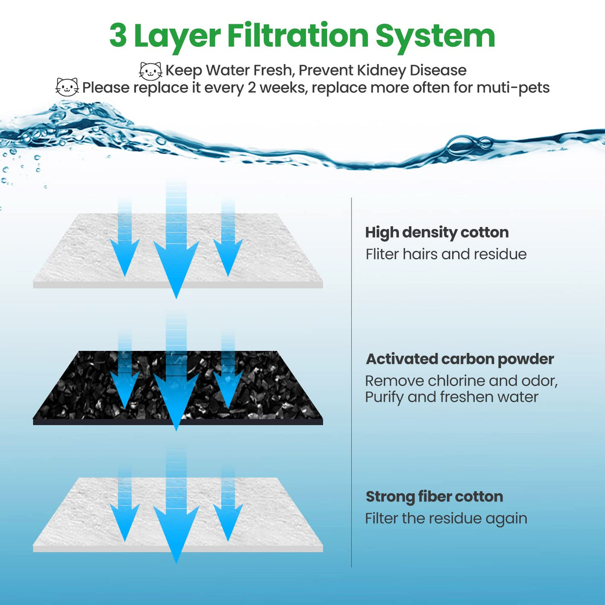12 Pack Replacement Filters for D30 67oz/2L Automatic Pet Fountain, ZEKIRY Carbon Cat Water Fountain Filters, Triple Filtration