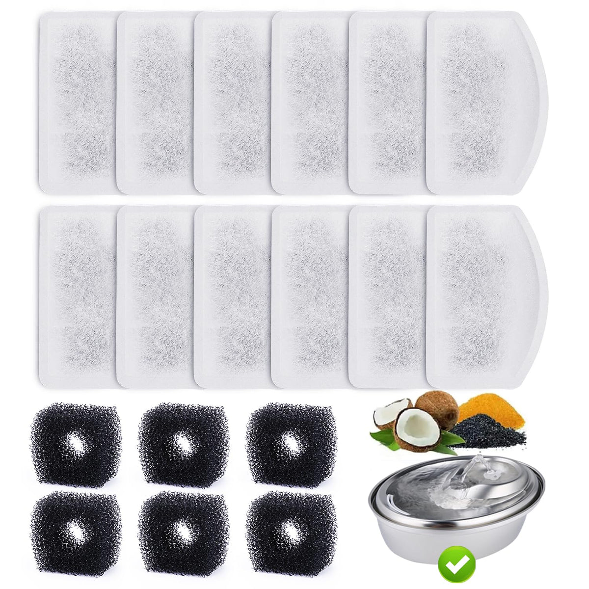 ZEKIRY was founded in 2016 in China, in the belief that our beloved pets should be taken good care of. We are committed to providing the best products to help you keep your pets happy and healthy. Features: Customer service: 12-Month return & refund policy and 24-hour customer service. Compatibility: ONLY Compatible with 100oz/3L stainless steel automatic pet water fountain. 3 Layer filtration system: High density cotton mesh layer fliter hairs and residue, keep water clean; Activated carbon powder layer remove chlorine and odor, purify and freshen water; Strong fiber cotton, filter the residue again. High density pump sponge: capture hair and debris, and prevent them entering the water pump, extend the life time of your fountain pump. Size: Replacement filter: 3.6 inch * 1.7inch, 2.38inch the widest Replacement sponge: 1inch * 1inch, 0.5inch circular diameter Material: Replacement Filter: High density cotton mesh+activated carbon Replacement sponge: High-density sponge Package List: Replacement filter * 12 Replacement sponge * 6