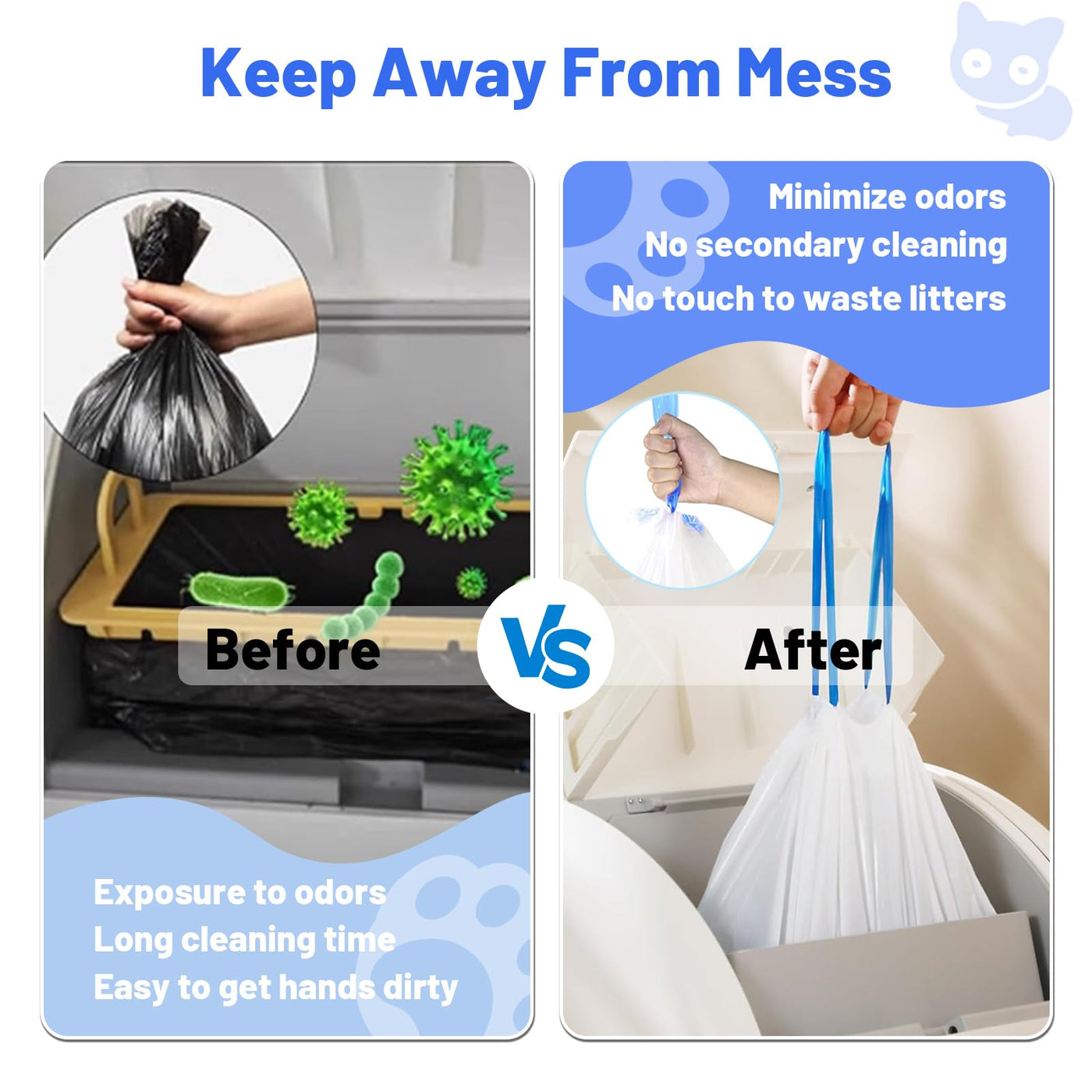 Convenient Drawstring Design: Each liner features a drawstring closure that keeps litter securely contained. This design prevents odors from escaping and makes disposal quick and easy. Simply pull and tie the drawstring for a secure seal.