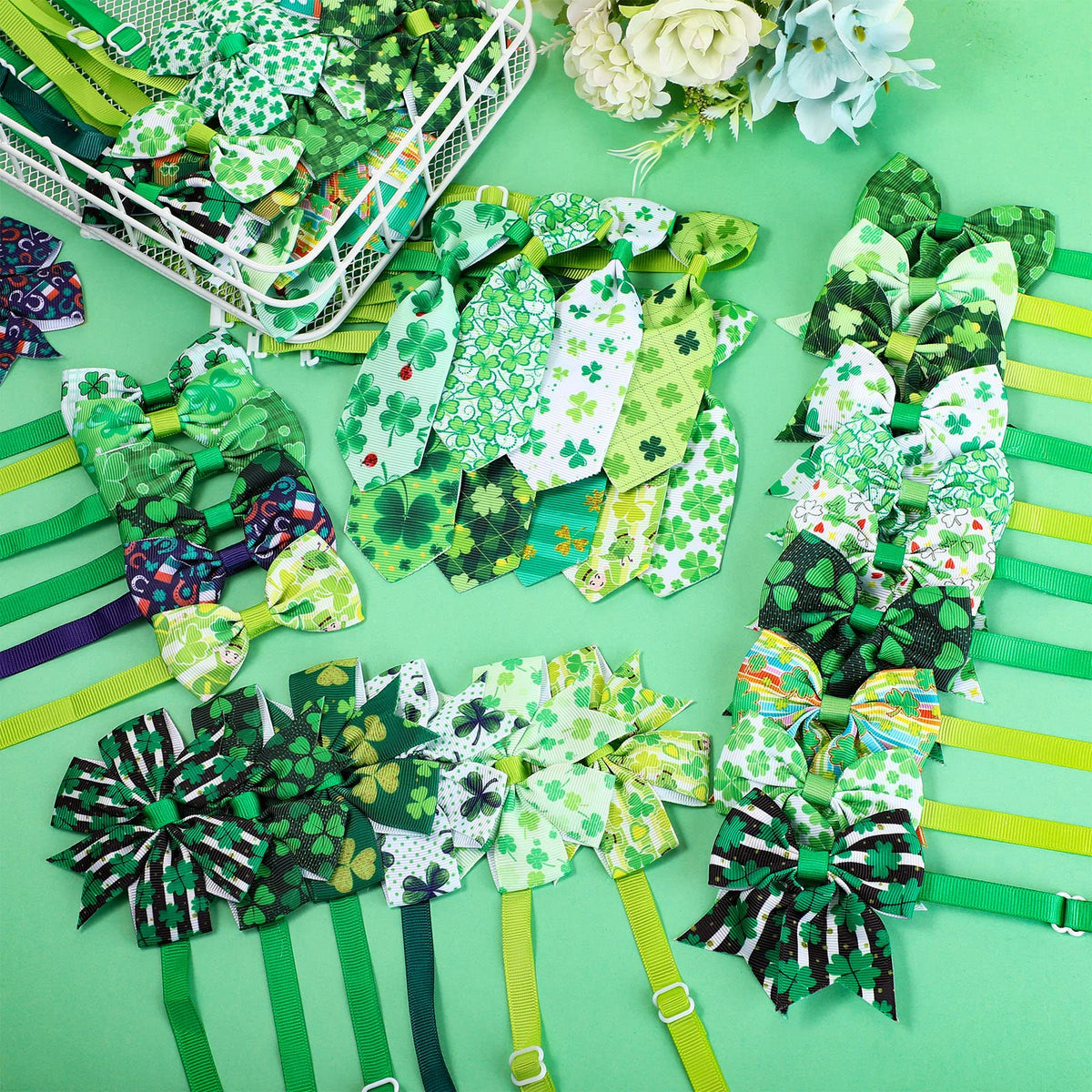 120 Pcs St. Patrick'S Day Dog Bow Tie Collar Set Includes 60 Green Irish Bow Ties For Dogs Dog Grooming Bowtie 30 Dog Neckties 3