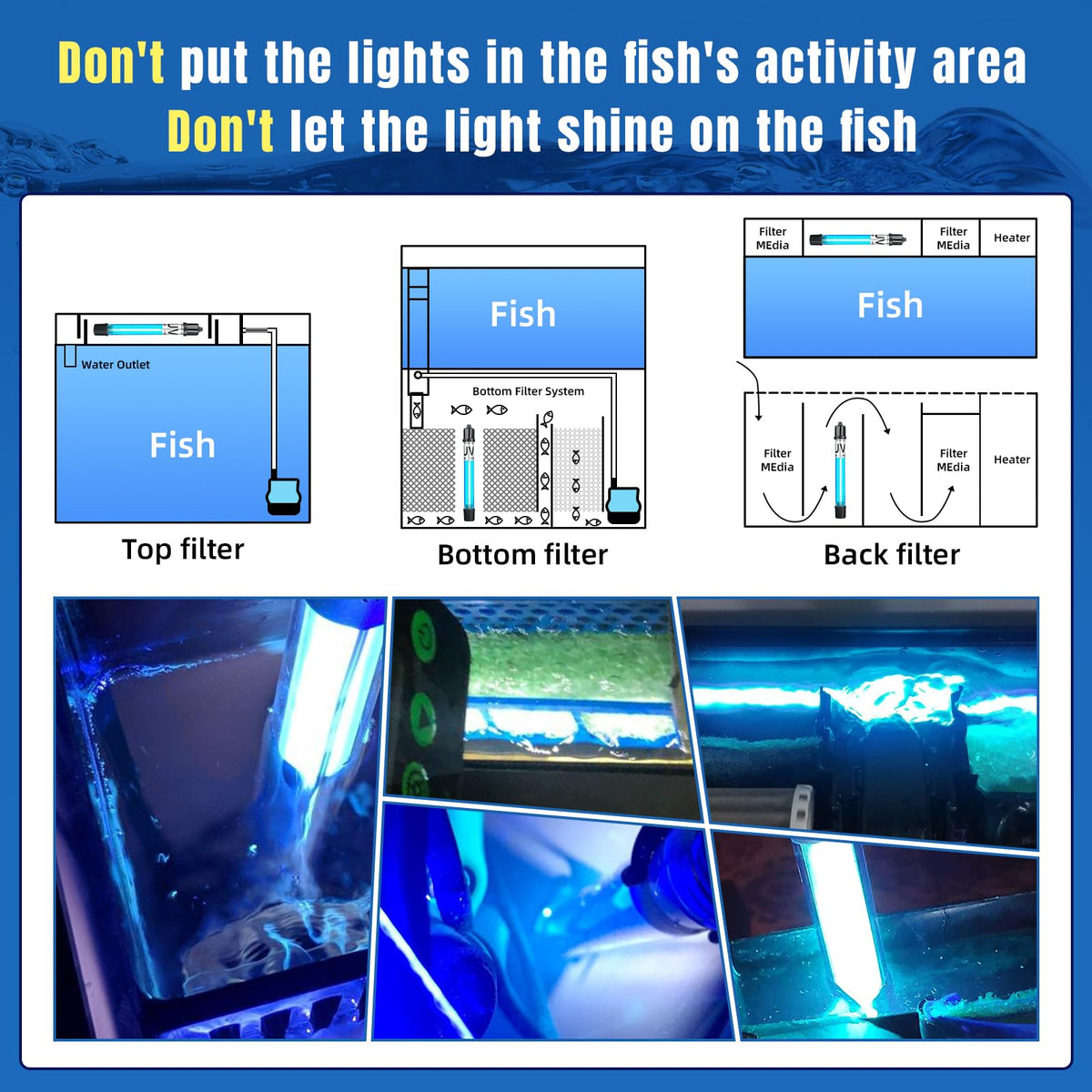 Your Solution For Clean, Algae Removal, And Filtration In Fish Tanks. Available In Various Models: 5W (4.9 In), 5W (6.8 In), 7W (8 In), 11W (10.24 In), And 13W (13.24 In), Each Designed For Optimal Performance. This Uv Aquarium Light Is Engineered To Effectively Eliminate Green Algae, Improve Crystal-Clear Water Quality For Both Fresh And Saltwater Setups. For Best Results, Use The Aquarium Uv Light For 3-4 Hours Every 2-5 Days. Its Silica Glass Light Transmittance For Cleaning The Water. Experience Reduced Algae-Induced Odors And Minimized Microorganism Growth With This Uv Fish Tank Light