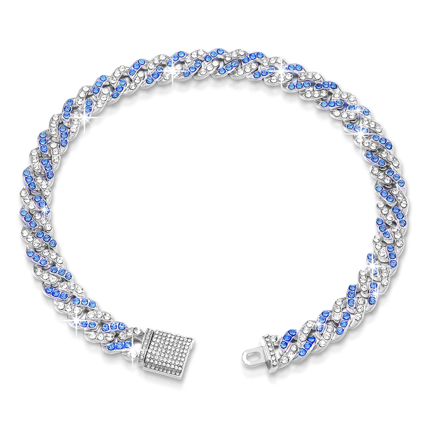 14Inch Glitter Dog Chain Collar Blue Silver Diamond Dog Collars Cuban Dog Chains Necklace Puppy Pet Metal Link Chain With Buckle Christmas Pet Jewelry Accessories Chain For Small Medium Dogs Cats