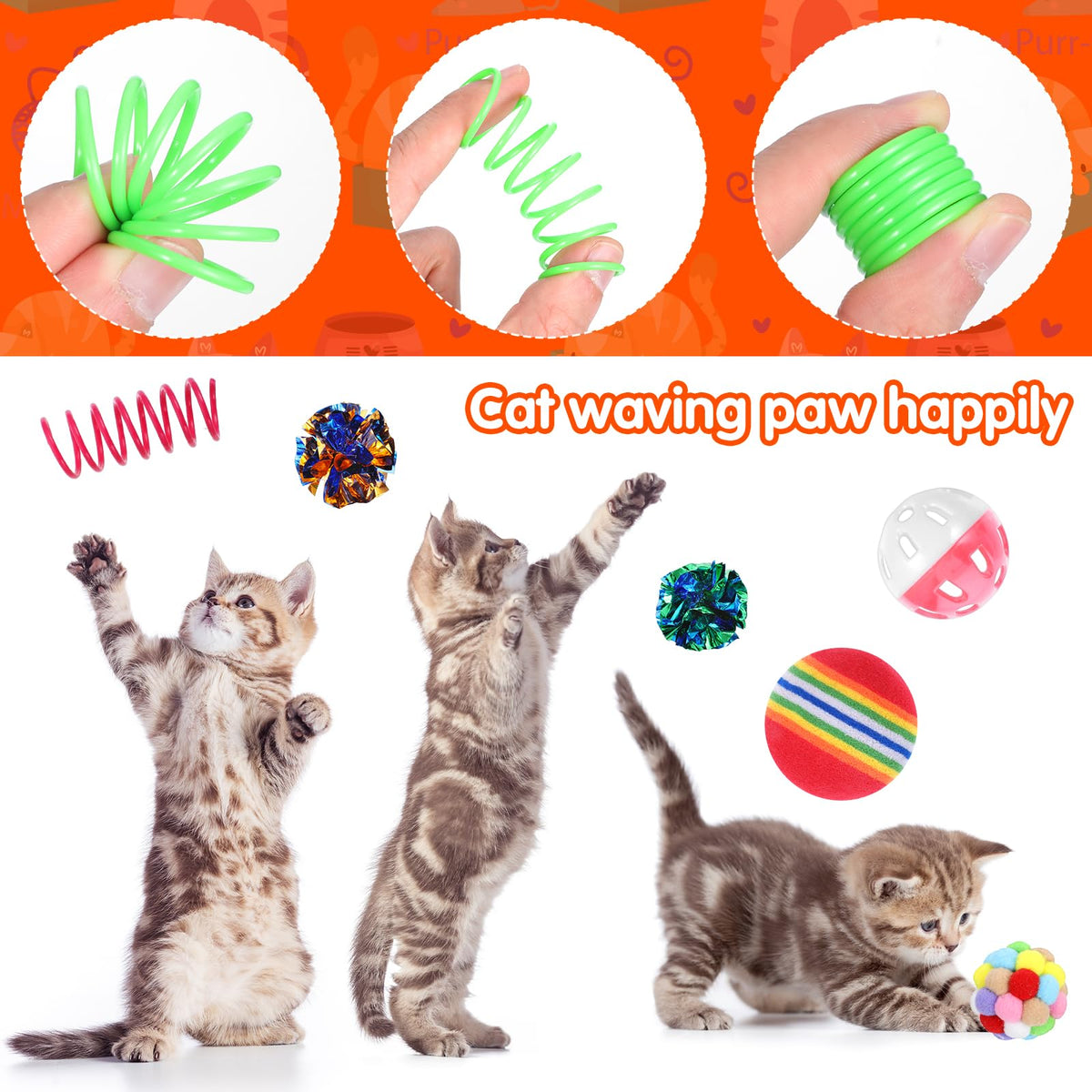 150 Pcs Cat Toys Bulk, Kitten Toys Assorted Cat Toy Variety Pack Cats Toy Bundle With Mice Rainbow Balls/Springs Crinkle Balls/L