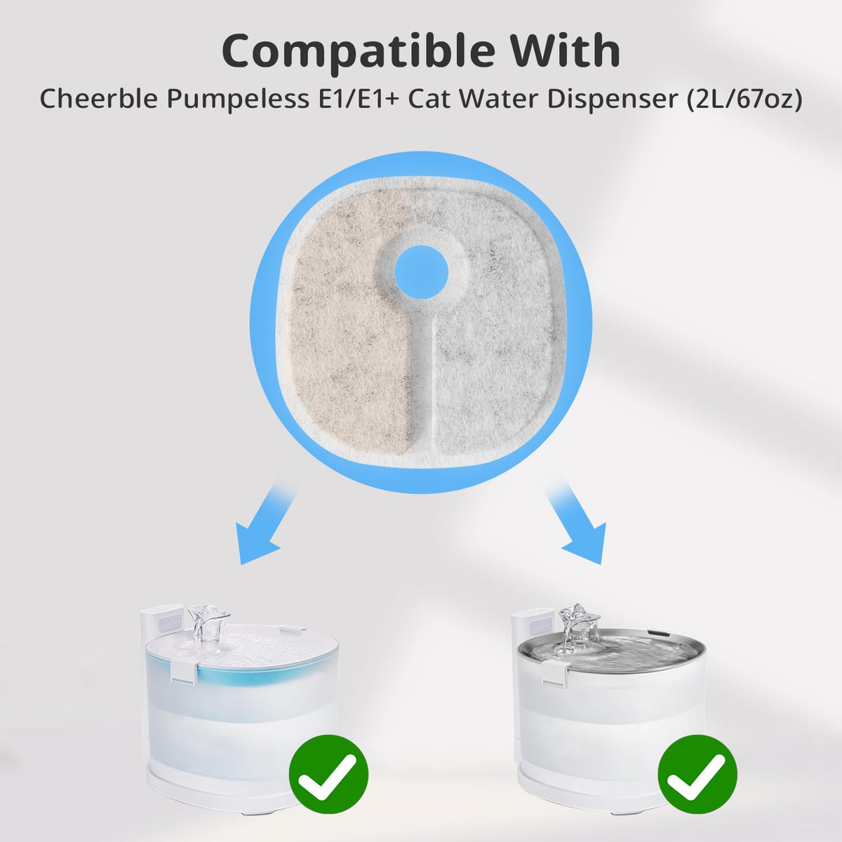 To Provide Your Pet With Fresh Drinking Water, Our E1+ &Amp; E1 Pumpless Cat Water Fountain Filter Has Triple Filtration To Remove Impurities And Soften The Water. It Contains A Variety Of Filter Specifications To Choose From, And You Can Replace It Once A Year Without Any Worries. It Is Recommended To Replace It Regularly To Maintain The Best Water Quality. Choose Us To Make Your Pet'S Drinking Water Healthier.
