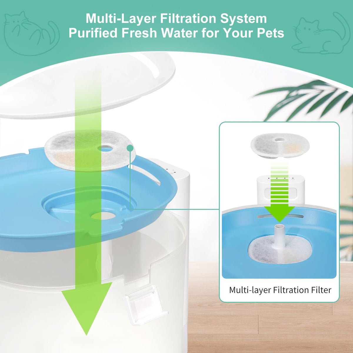 8 Pack Replacement Filters For 2L/67Oz Pumpless Cat Water Fountain, Bflicroy Cat Water Fountain Filters, Multiple Filtration Pet Fountain Filter Replacement, Dog Fountain Filters