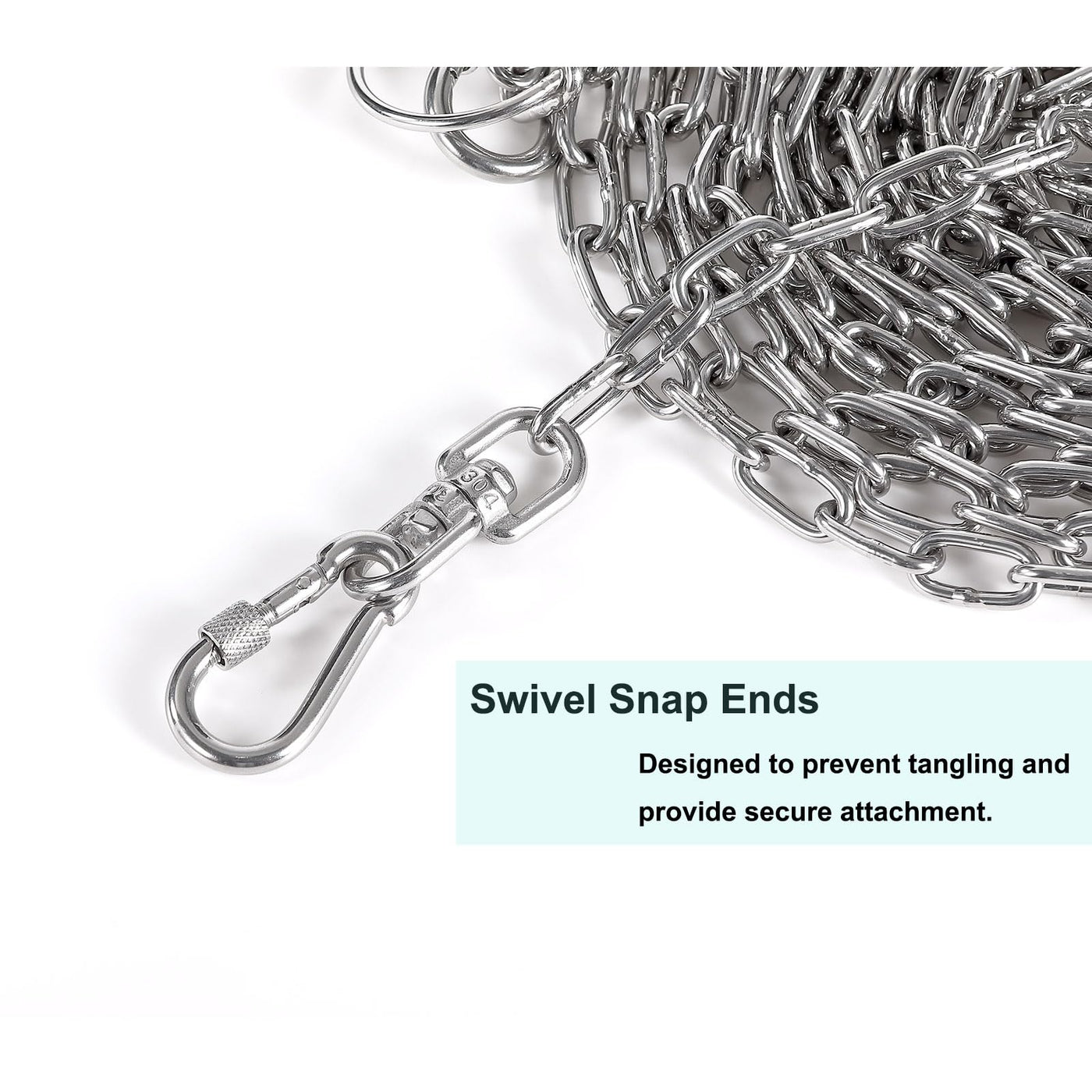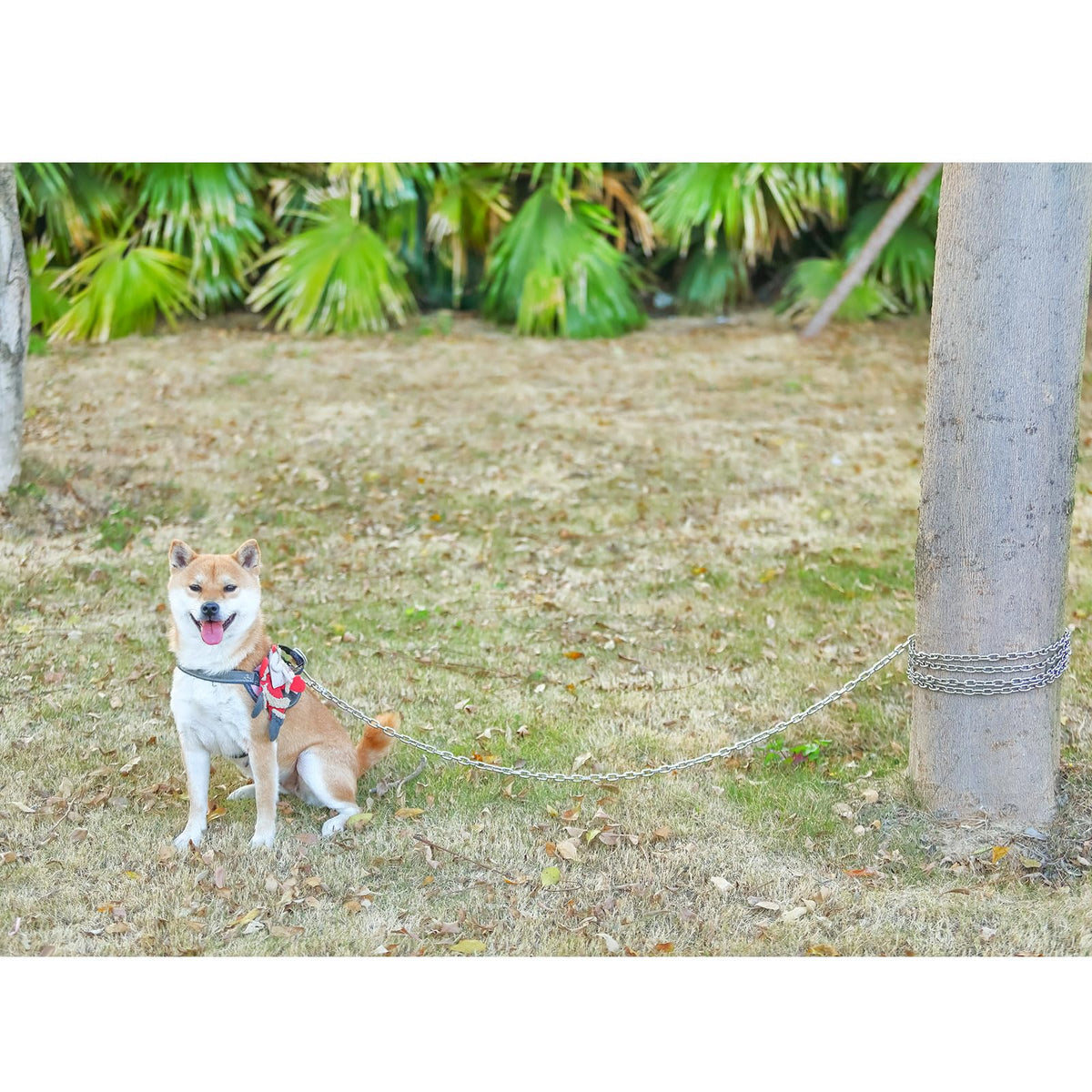 CCYODECO Pet Tie-Out Chain ensure your pets safety and give them room to roam with the Omni Pet Tie-Out Chain. Durable Construction: This dog tie-out is made of 304 stainless steel for long-lasting use. With a thickness of 3mm, the dog chain can withstand a maximum tension of 680kgf, making the metal dog leash suitable for dogs up to 80 lbs. Swivel Snap Ends: Designed to prevent tangling and provide secure attachment. Please note: Not all animals are suitable for tie-out systems. The behavior and safety of your pet and others are the responsibility of the pet owner. Ensure you monitor your pet using the tie-out chain to maintain a safe and secure environment.