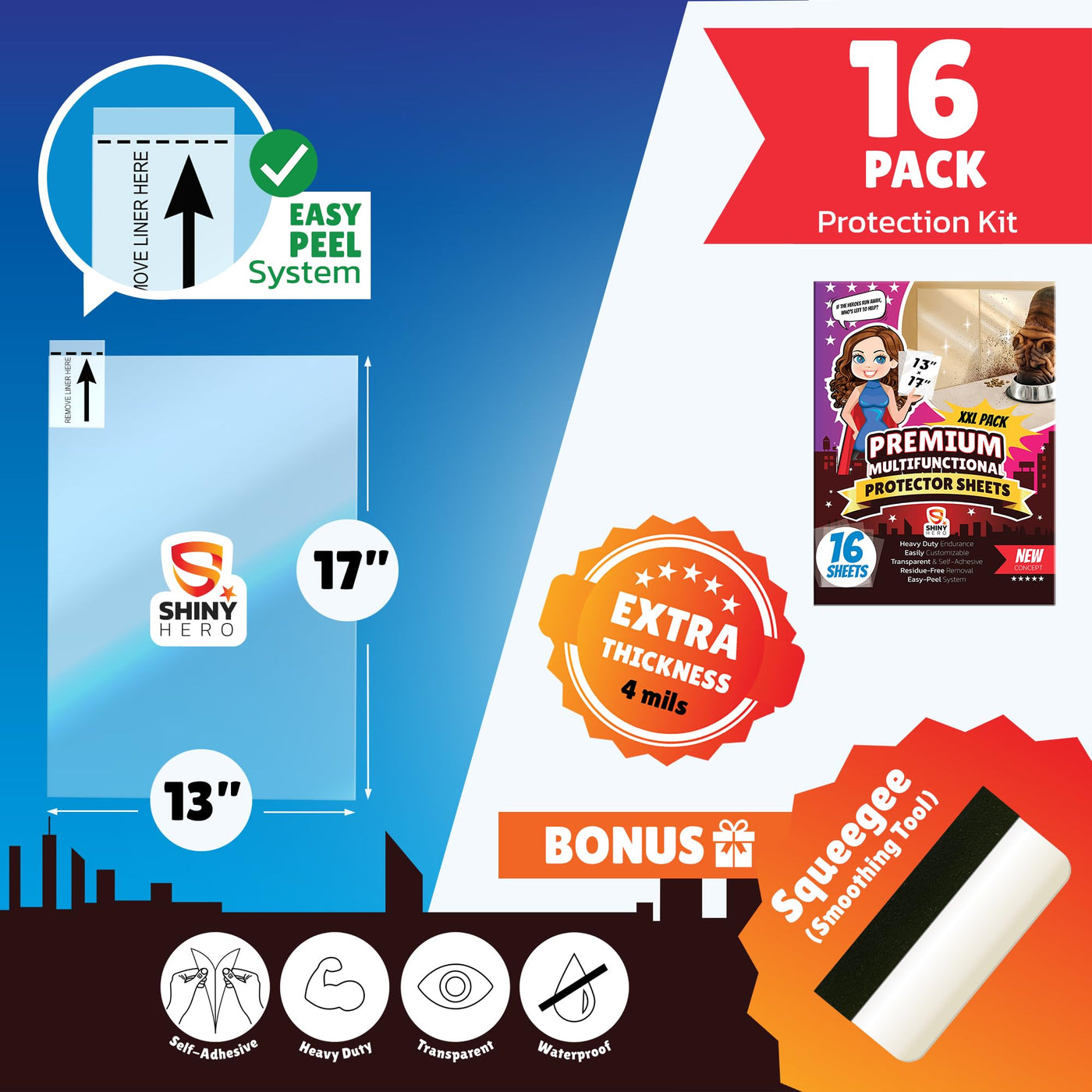 Backsplash Protector Plastic Sheet - Keeping Your Home Clean Is Easier Than Ever! Its the perfect solution to guard all surfaces against spills, stains, water, dirt, salt, and oil grease, while providing a cleaner and healthier household. You can remove any stains only with a soapy sponge without using cleaning tools or products that can damage the surfaces. The screen door protector from door anti scratching, clear wall protector, was designed having in mind the perfect balance between functionality and durability, allowing you to keep your walls or furniture clean without interfering with your interior decor. Made with high-grade plastic material, with an upgraded design that leaves behind no residue and a super-strong adhesive compatible with all smooth surfaces, this sheet protector will quickly become your go-to choice against backsplashes from muddy shoes, sloppy eating pets, dirty garage tools and more! Setting it up is actually simple; keep in mind that the surfaces must be smooth, free of dust, grease, or other impurities that may compromise the adhesive strength. This is an adhesive product; in exceptional cases, it may leave a sticky residue after removal. Don? worry! Use rubbing alcohol to clean the surface. Wide uses include pet feeding areas, anti-scratch door areas, garage areas, trash can splash guard, office and desk walls, Kitchen backsplash protector; Countertop protector, cupboards, pantry shelf liner, garage wall protector from tools, bicycle wheels or car door, cabinets, wardrobe, old or new furniture, appliances scratch protector; crafts, cover, poster&puzzle, baseboard; On glass, metal, wood, tiles, plastic, painted walls, drawing/writing desk&wall protector, behind the stove, under the sink, trash can wall protector, dogs & cats feeding area wall protector, door scratching protector, walls protector from chair back, under-desk wall protector at office or room;