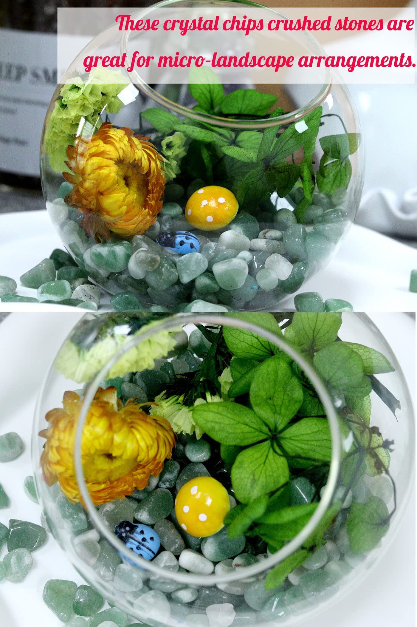 Q: Can I use these crystal chips for decorative purposes outside of an aquarium?A: Yes, the natural crystal chips can be used for various decorative purposes, such as vase fillers, in flower pots, or as part of DIY crafts. Their aesthetic appeal and unique colors make them suitable for home decoration.