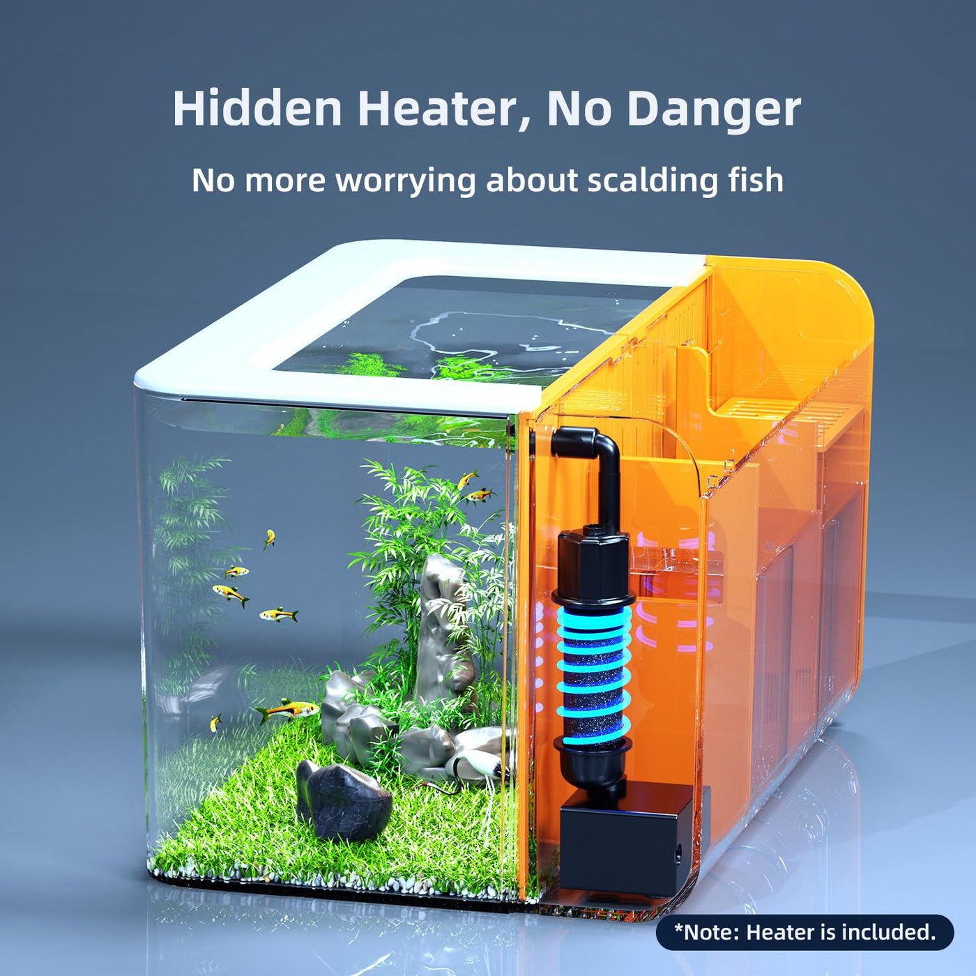 2.5 Gallon Fish Tank Small Aquarium Starter Kit with Heater, Hidden Filtration, 3 Color Light, Self Cleaning Nano Tank for Betta