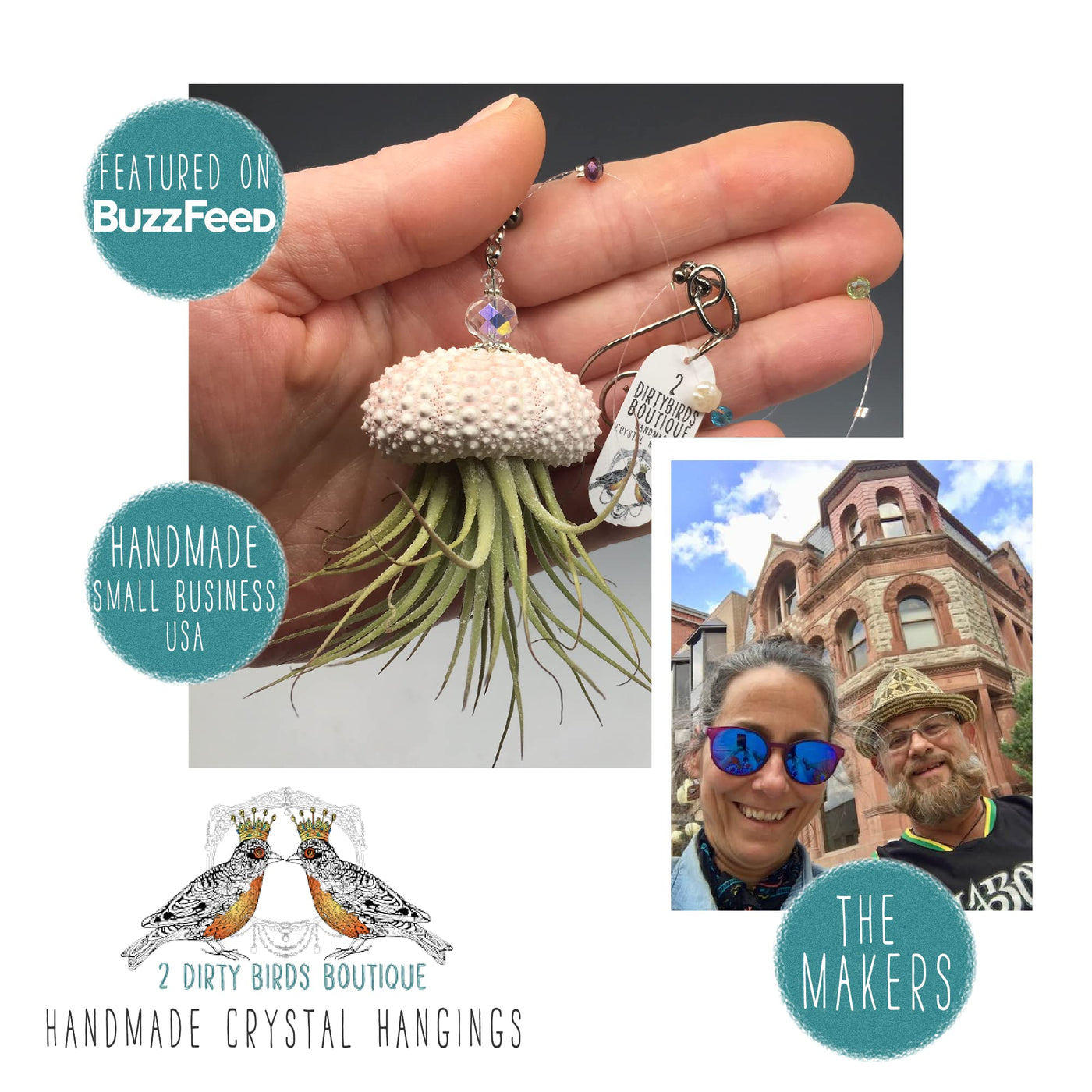 Features And Benefits: Whats Included: (2) 16- 20 Inch Bead Line Length, Live Jellyfish Hanging Air Succulent Plants, Strung With Bedazzled Lovely Peach/Pink Sea Urchin Shell Swarovski Crystals, Freshwater Pearls & Sea Glass Beads. Your Air Plant Will Come Carefully Wrapped With Plant Care Instructions And With A Special Handwritten Note From Our Makers! Easy Care: With The Proper Amount Of Water And Light Our Plants Are Easy To Care For And Provide Low Maintenance. We Include Easy To Follow Instructions For Every Order. Our One-Of-A-Kind Hanging Air Plant Requires Minimum Effort, Just Mist A Few Times A Week! Great For Any Bathroom, Desk, Or Indoor Terrarium. Our Succulent Makes For A Great Introductory Plant, And Brings Life To Any Space Thoughtful & Affordable Gift: Everyone Knows Someone Who Loves Sprucing Up Their Living Space, Give The Gift Of Elegance And Fun, With Our Unique And Fun Hanging Jellyfish Air Plants! Applications Use: For Boho D Cor, Home D Cor, Easy To Care For House Plant, Can Be Hung Indoor Or Outdoor, Great Terrarium Ornament Gift, Unique Cubicle D Cor Brand Integrity: Our Company (2 Dirty Birds Boutique) - We Hand Craft Our Pieces With Beautiful Objects That Pay Tribute To The Natural World. Made From Our Hearts And Hands For You To Treasure. Product Description: Add Some Living Bling To Your Decor With Our Super Cute, Set Of 2 Handmade Hanging Jellyfish Air Plants 2 Dirty Birds Boutique Is Proud To Deliver Our All New Bejeweled Hanging Jellyfish Air Plant: The Perfect Accessory To Add Life To Your Home, Office, Spa, Or Sunroom. Featuring Swarovski Crystal, Beach Glass And Freshwater Pearls, Our Jellyfish Air Plant Offers A Unique Bohemian Style That You Can'T Find Anywhere Else.