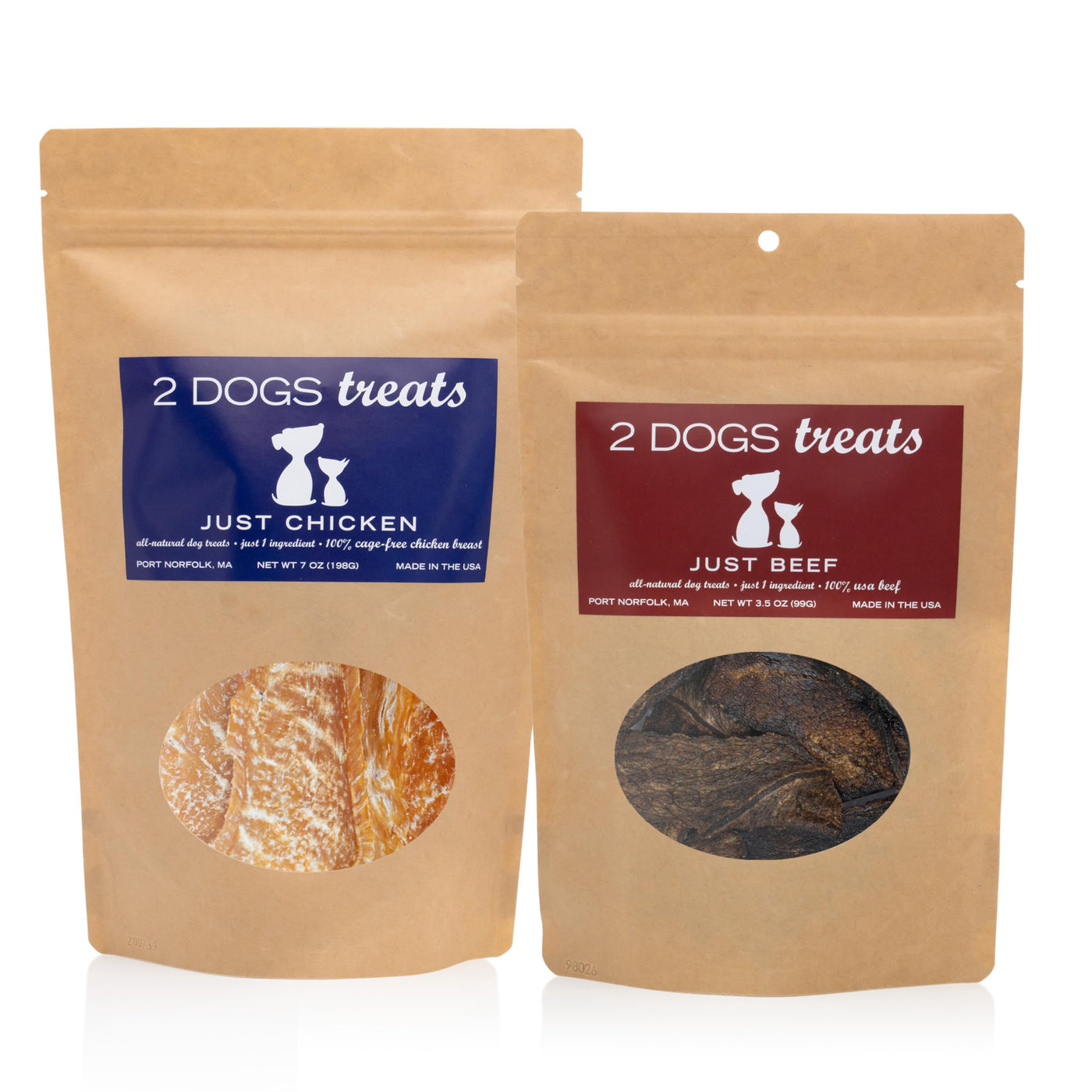 2 Dogs Treats Just Chicken & Beef Jerky | 100% USA-Sourced, Single-Ingredient, Great for Sensitive Stomachs, Human-Grade USDA Ch
