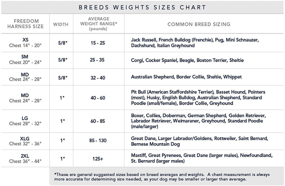 Q: What sizes does the 2 Hounds Design Freedom No Pull Dog Harness come in?A: The 2 Hounds Design Freedom No Pull Dog Harness is available in various sizes, including Small, Medium, and Large. For the best fit, measure around the largest part of your dog's chest and select the smallest size that fits within the measurement.