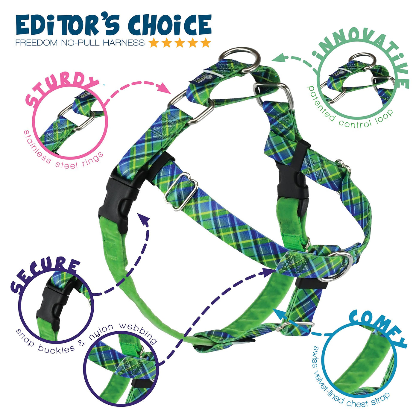 Transform Your Walks With The 2 Hounds Design Freedom No-Pull Harness! This Patented Harness Gently Discourages Pulling With Its Unique Martingale Loop, Giving You Control Without Choking Or Discomfort. Featuring Front And Back Connection Points, Using Them Together Reduces Pulling Force, Eases Strain, And Helps Train Your Dog To Focus On You. Sewn, Assembled, And Shipped In The Usa With Durable Nylon Webbing, Stainless-Steel Hardware, And A Swiss Velvet Lining To Prevent Chafing, Its Designed For Ultimate Comfort And Longevity. Four Adjustable Points Ensure A Snug, Custom Fit For Any Dog Size. Included Is The Training Leash That Adapts To Multiple Configurations, Including Connecting To Two Harness Points (3), A Single Point (5), Or Both A Harness And Collar, Offering Enhanced Control And Even Pressure Distribution For Effective Training. Built For Durability And Comfort, Its Perfect For Every Outing! Finding The Perfect Fit For Your 2 Hounds Freedom No-Pull Harness Is Essential For Your Dog'S Comfort And Safety. To Get Started, Grab A Soft Tape Measure Or A Piece Of String And Measure The Circumference Of Your Dog'S Chest At The Widest Point, Usually Right Behind The Front Legs. Keeping It Snug But Not Too Tight, You Should Be Able To Slip Two Fingers Between The Tape And Your Dog'S Fur. Once You Have Your Dog'S Chest Measurement, Refer To The Size Chart In The Graphics To Find The Corresponding Size Range. Now, Consider Your Dog'S Weight And Breed To Determine The Appropriate Harness Width. The 5/8'' Width Is Best For Smaller Dogs Under 40 Lbs, Such As Dachshunds, Jack Russell Terriers, And Beagles. The 1'' Width Is Ideal For Larger Dogs Over 40 Lbs, Like Labrador Retrievers, German Shepherds, And Pit Bulls. If Your Dog Falls Between 32-40 Lbs, The 5/8'' Medium Is Recommended, While Dogs Between 40-60 Lbs Should Wear The 1'' Medium.