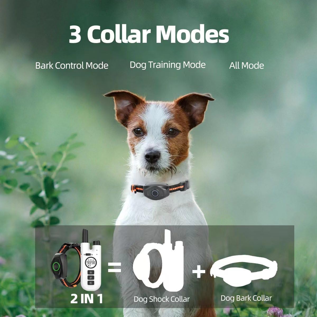 GPJYNR 2-in-1 Waterproof Bark Collar with Remote, 3 Training Modes & 1300Ft Range for Small Medium Large Dogs (W6400-2)