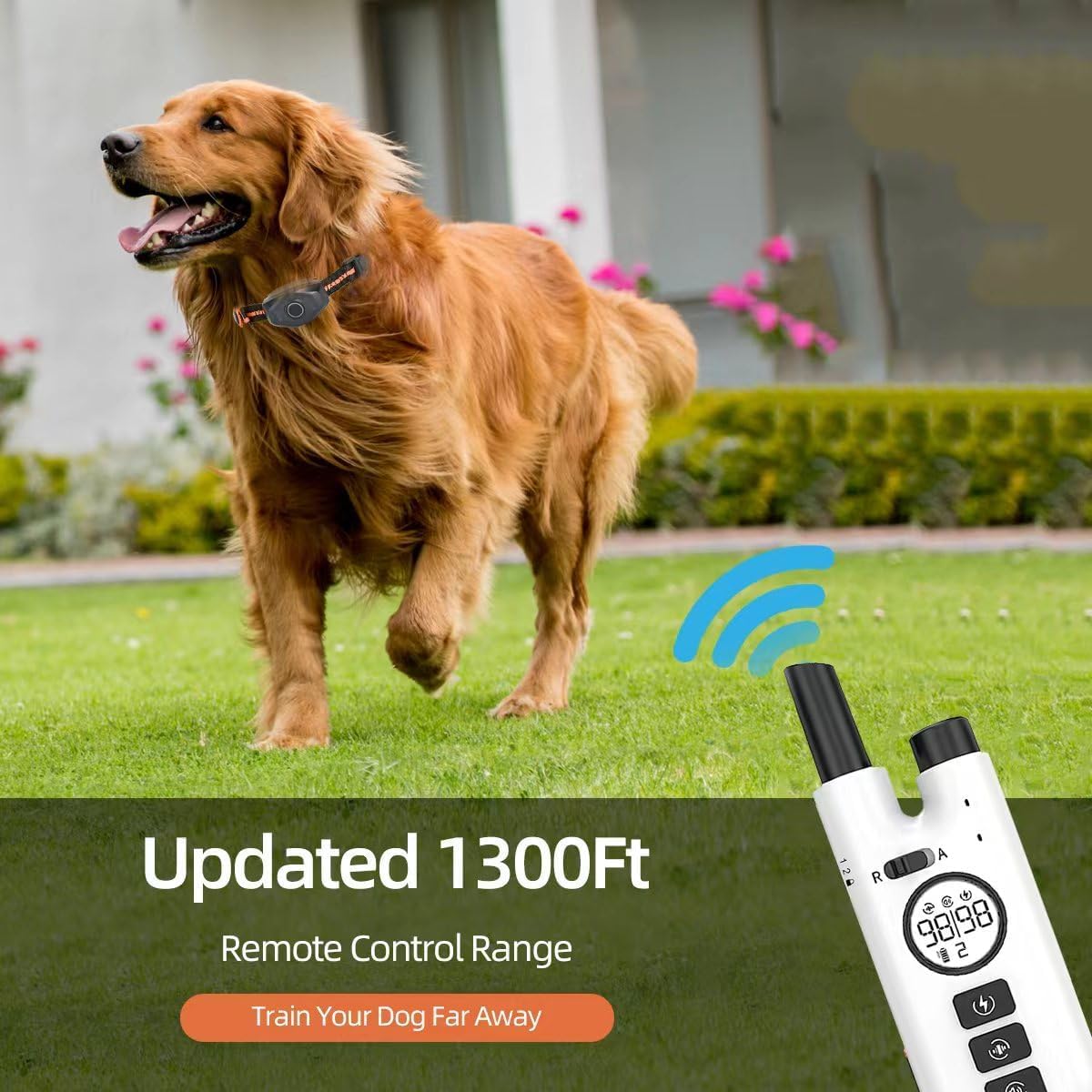 The GPJYNR collar offers a 2-in-1 functionality that allows you to use it as both a remote control training collar and an automatic anti-bark collar. With three distinct training modes ? beep, vibration (1-100 levels), and static shock (1-100 levels) ? you can effectively address various behavioral issues such as barking, biting, chasing, jumping, and digging. The remote has an impressive range of up to 1300ft, making it perfect for both indoor and outdoor training.
