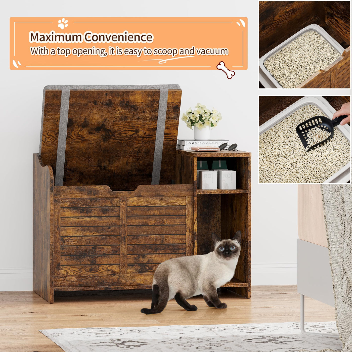 2-In-1 Litter Box Enclosure With Top Opening And Pad, Hidden Litter Box Furniture, Dog Proof, Storage, Wooden Cabinet, Easy To Clean, For Hallways, Bedrooms, Balconies