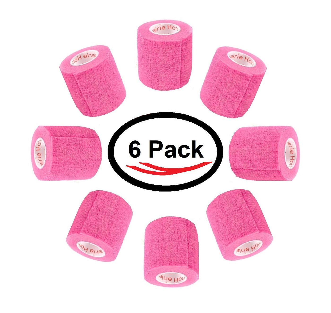 2 Inch Vet Wrap Tape Bulk (Neon Pink) (Pack of 6) Self Adhesive Adherent Adhering Flex Bandage Grip Roll for Dog Cat Pet Horse