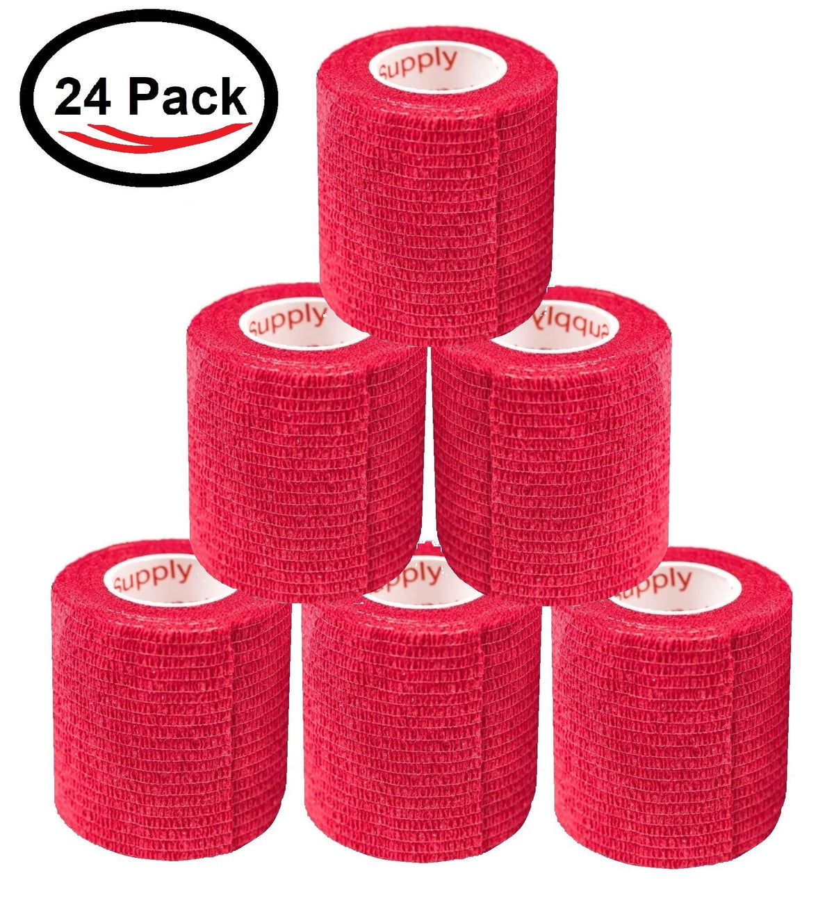 2 Inch Vet Wrap Tape Bulk (Red) (Pack of 24) Self Adhesive Adherent Adhering Flex Bandage Grip Roll for Dog Cat Pet Horse