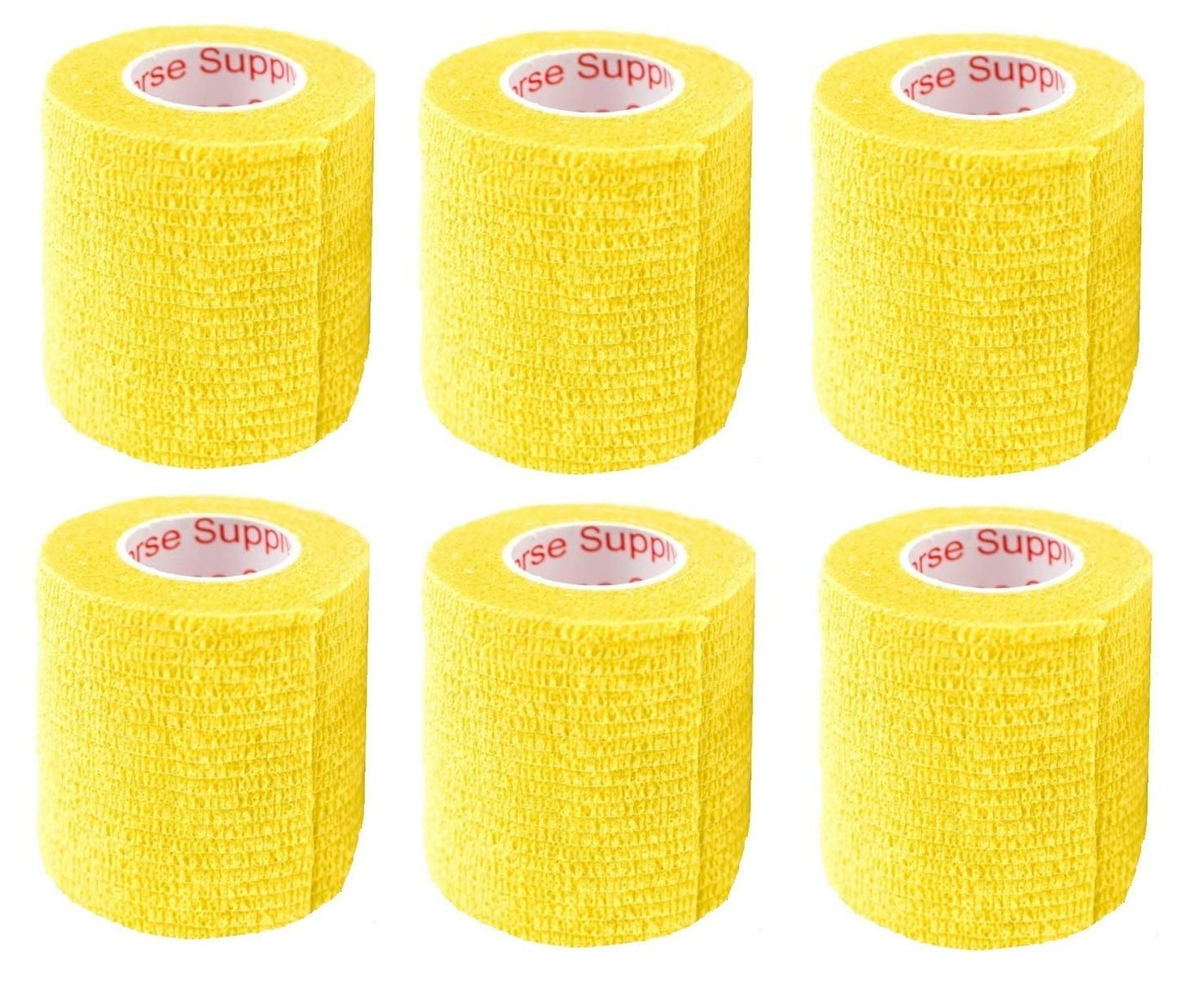 2 Inch Vet Wrap Tape Bulk (Yellow) (Pack of 6) Self Adhesive Adherent Adhering Flex Bandage Grip Roll for Dog Cat Pet Horse