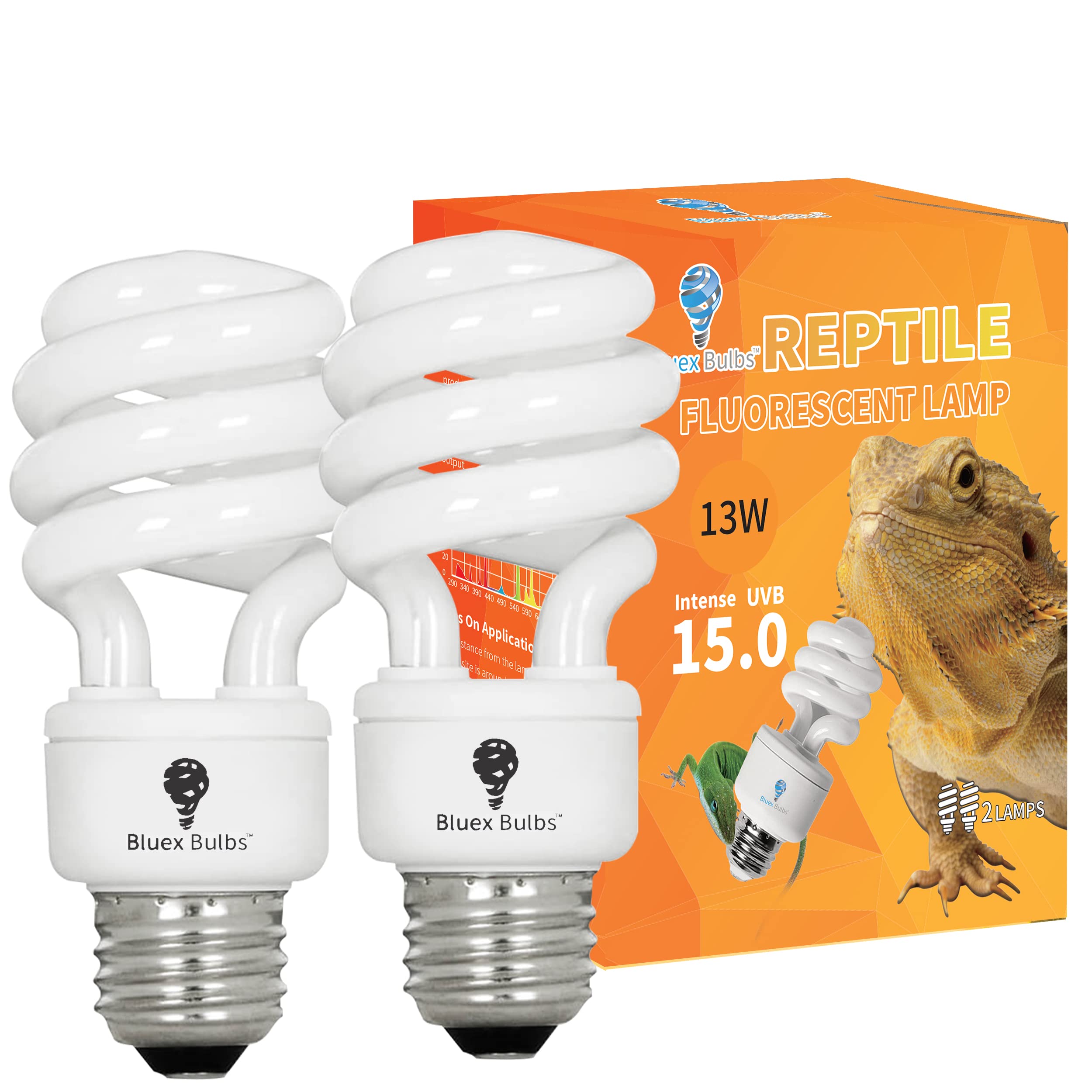 If Its Time To Replace Your Light Bulbs, Bluex Bulbs Products Are The Way To Go. From Leds And Fluorescent Lighting Tubes, Uvb Lamp To Nightlights And Decorative Lighting, We Offer High-Quality Light Bulbs To Meet The Needs Of Homeowners And Business Owners Alike. Light Up Your Entire Backyard, Keep Pests Away, Grow Your Plants Or Create A Spectacular Light Display For That Special Occasion. When It Comes To Bright Ideas, Bluex Bulbs Will Exceed Your Expectations With Flying Colors. Proper Lighting Helps To Create The Proper Environment Since Reptiles Use External Sources To Regulate Their Body Temperature. Certain Species Need Uvb - Part Of The Suns Natural Light Spectrum - To Synthesize Vitamin D3, Allowing Them To Properly Absorb And Metabolize Calcium. Replicating The Light They Would Receive In Their Natural Habitats, Each 13-Watt Intense Uva Uvb Bulb 15.0 Cfl Reptile Light Bulb Provides Necessary Uvb Rays To Ensure Optimal Calcium Metabolism And Prevent Or Reverse Metabolic Bone Disease. Easy To Install With A Standard E26 Base, Bluex Bulbs 13-Watt Intense Uvb Uva Reptile Light 15.0 Cfl Reptile Light Bulbs Are Ideal For Use With Screened Terrariums. Place The Lamp Directly Overhead Of Your Reptiles And Not To The Side Which Would Force Them To Stare Into The Lamp. The Distance From The Lamp To The Reptile'S Basking Site Is Around 10 Inches (25 Cm). For Safety Purposes, Always Keep Your Lamp At Least 15 Cm Away From Your Reptiles. Please Note: Its Recommended That You Combine This Bulb With Natural Light Or Reptile Vision For Optimal Visual Light Output.