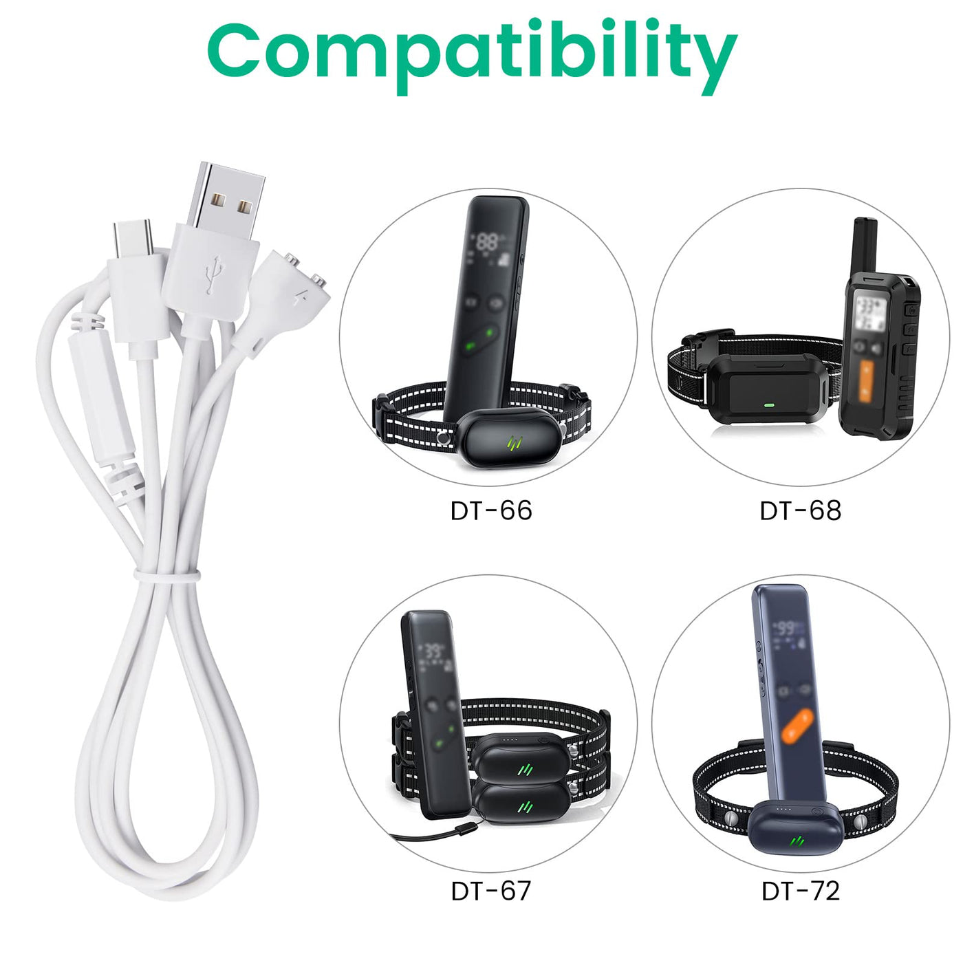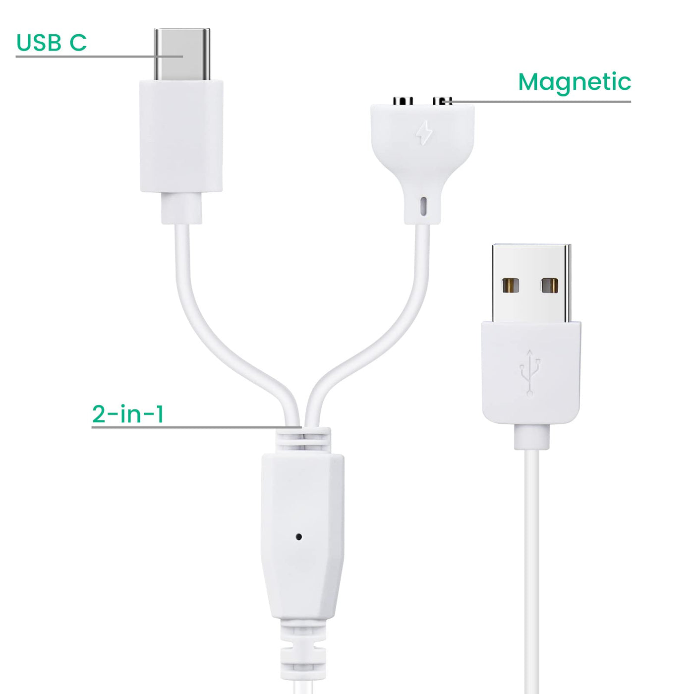 2-Pack Charger Replacement for Delupet and Compatible with Yawpet Dog Training Collar 2-in-1 Magnetic Charging and USB C Cable Shock Collar Charging Cord White