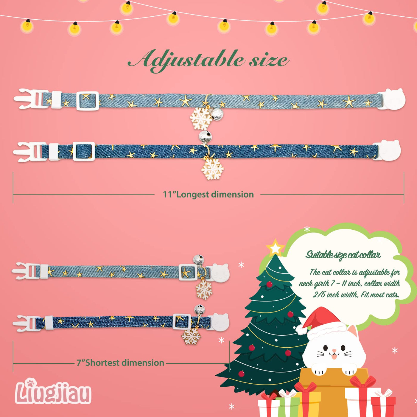 2 Pack Cotton Breakaway Cat Collar With Bell,Dark Blue & Light Blue White Snowflake Pendant Cute Cat Collar Kitten Collar,Ideal