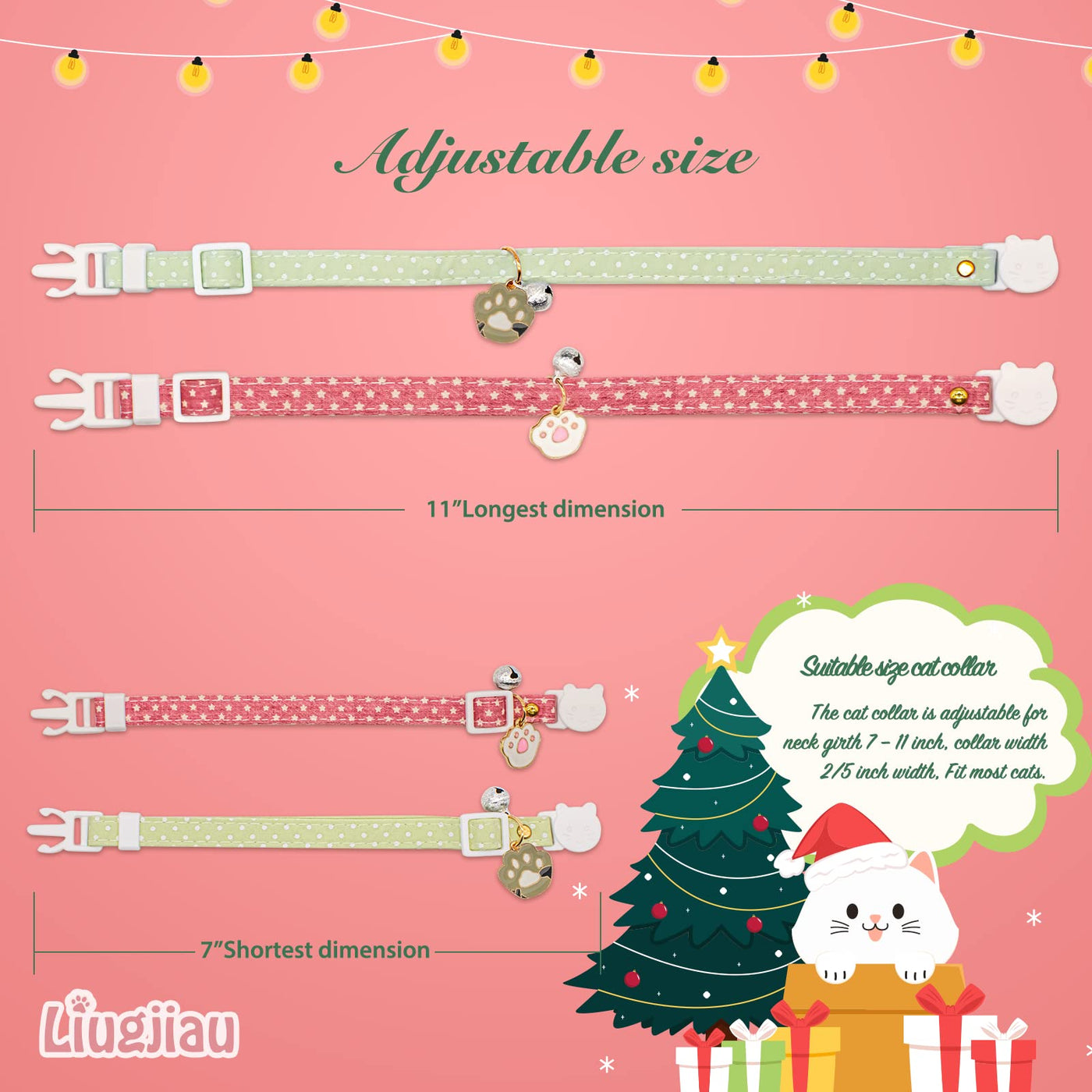 Liugjiau Cotton Breakaway Cat Collar With Bell Our Split Cat Collars Are Designed To Fit Most Cats With An Adjustment Range Of 7'' - 11'' And Width - 2/5''. For These Cat Collars, We Use High Quality Materials And Detachable Buckles To Make Them Comfortable And Secure. ?Comfortable Material? Cotton Breakaway Cat Collar With Bell, Our Cat Collar Is Only 2/10 Ounce, Light Weight, Skin-Friendly And Safe. ?Protect Your Pet? In Order To Prevent Your Cat From Being Scratched, We Did Not Use The Pointed Ear Buckle Design On The Market, But The Round Ear Design, Which Can Well Protect The Cat'S Neck From Being Scratched. ?Secure Detachable Split Buckle? Cat Collar With Safety Release Buckle, If Your Cat Is Trapped, The Safety Buckle Will Release When It Breaks Free, Preventing The Cat From Choking In Extreme Situations And Keeping The Cat Safe. ?Wildlife Safety Bell? There Is A Wildlife Safety Bell On The Collar To Warn Birds And Small Animals Cats Are Coming. On The Other Hand, You Will Never Lose Your Kitty. The Bell Can Be Removed Or Replaced. ?Handmade With Love? We Are A Group Of Cat Lovers, We Handcraft Stylish And Comfortable Collars With Love, If You Are Not Satisfied With Our Cat Collars, Please Contact Us For A Refund Or Replacement. Color : Pink & Green Quantity : 2 Material : Cotton Manufacturing Method : Hand Made Easy To Clean : Hand Washable Or Spot Clean