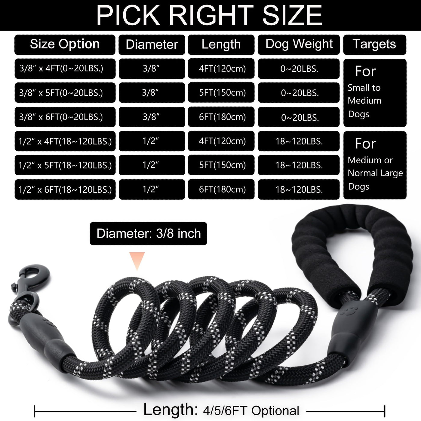 4/5/6 Ft Dog Leash With Comfortable Padded Handle And Highly Reflective Threads For Small Medium And Large Dogs Both You And Your Dog Need A Perfect Walking Experience, And Boomiboo Dog Leash Will Be A Good Choice. - Comfortable: Padded Handle Provides A Comfortable Grip. - Reflective: We Add The Reflective Stitching For Keeping Safe And Visible On Night Walks. - 360 Rotate Clasp: 360 Degree Tangle Free Swivel Heavy Duty Clasp Gives Your Dog Best Freedom. - Heavy-Duty: The Durable Nylon Rope Provides You Excellent Durability And Optimum Control Of Your Pet. Package Content: You Will Get The Value Pack Of 2 Dog Leashes. Available In 5 Distinct Radiant Colors To Pick From, Pick What Suits You And Your Dog. This 5 Foot Length Dog Leash Is A Perfect Balance Between Freedom And Control, Give Enough Freedom To Your Dog And Everything Under Your Control.