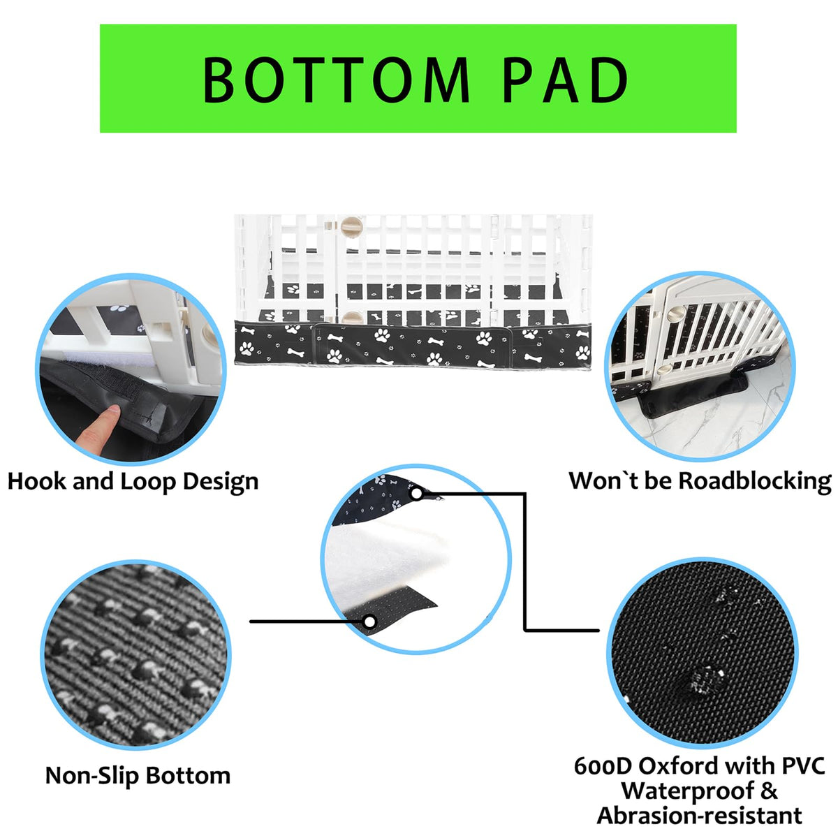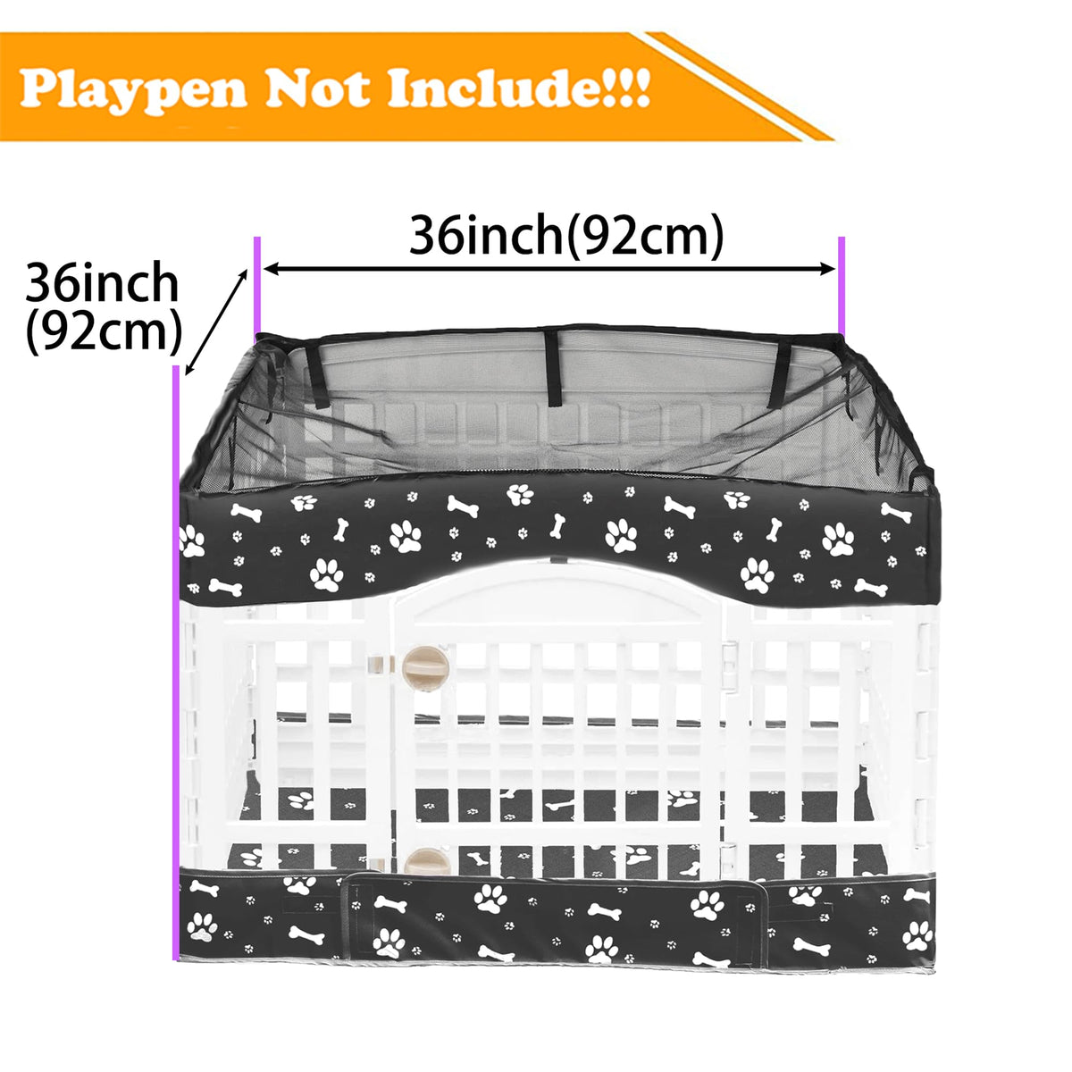 2 Pack Dog Playpen Cover And Bottom Pad Fits For 36 Inch 4 Panels Pet Playpen, Dog Crate Pad Puppy Play Pen Cover, Hoop And Loop Design (Note: Playpen Not Included). -Black