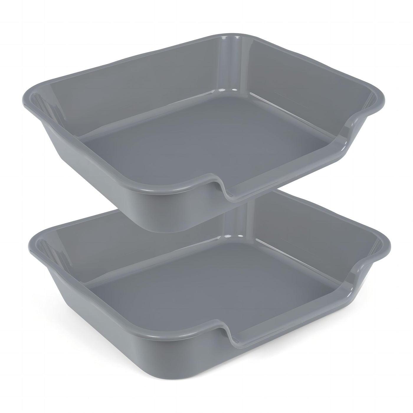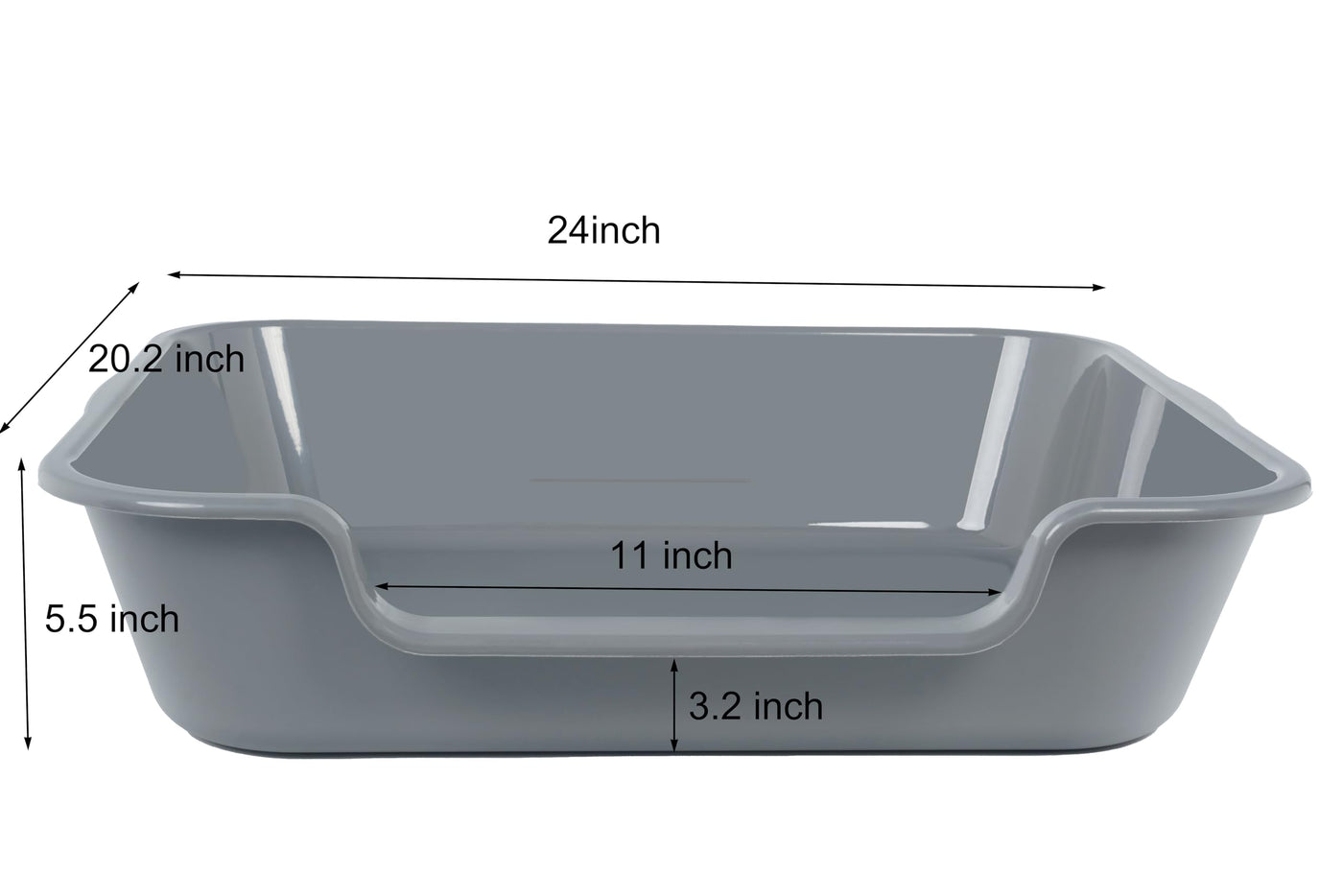 2 Pack Extra Large Dog Litter Box Pan Tray (ABS Material), Low Entry Jumbo Senior Litter Boxes for Multiple Kitten Big Cats, Pet Safe Indoor Dog Potty (Dark Gray, 24 L x 20 W)