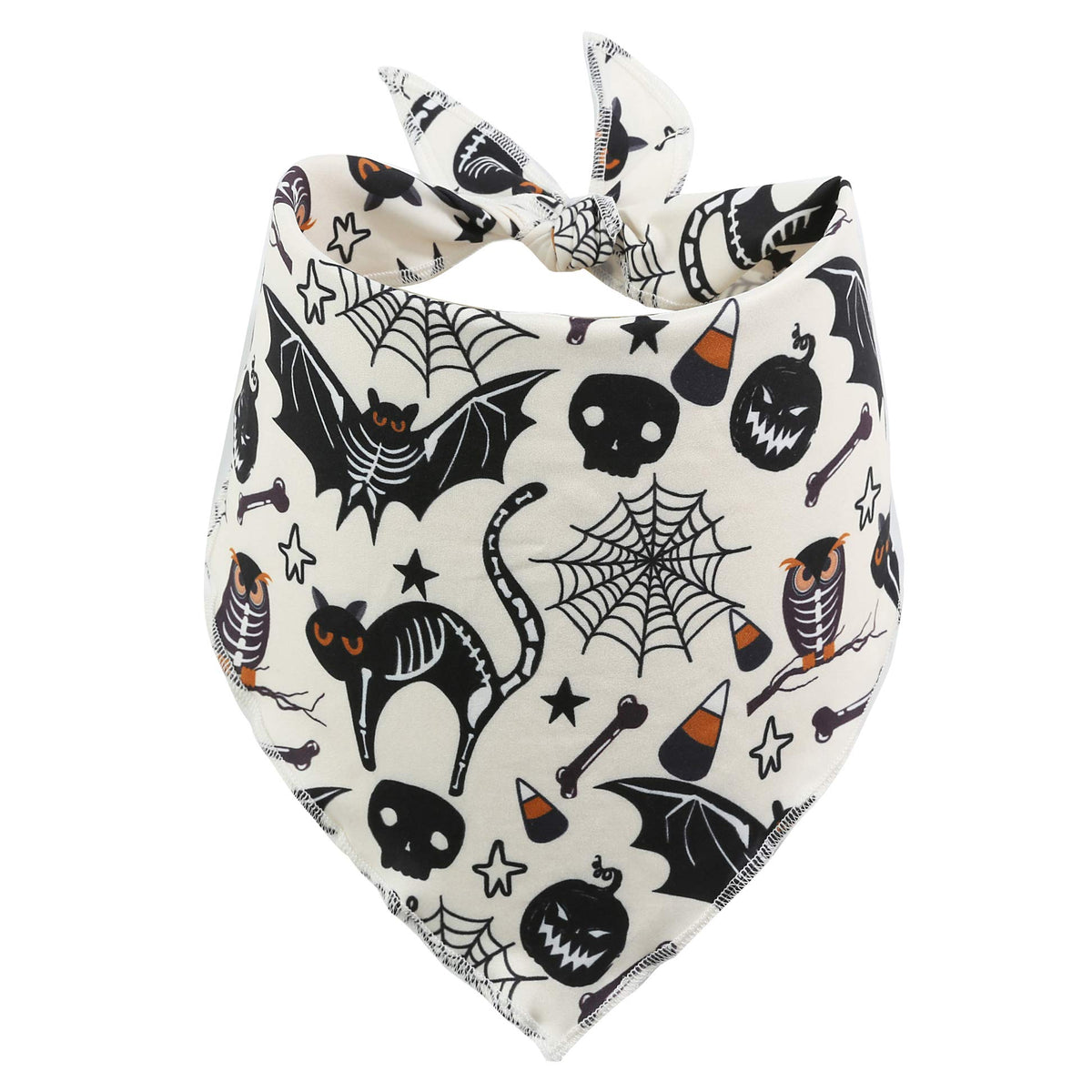 Q: What material are the Halloween dog bandanas made of?A: The bandanas are made from a soft, stretchy material that allows for comfort and ease of wear, ensuring your dog won't mind having it on.