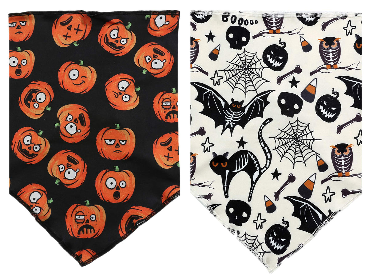 Q: What is included in the pack of Halloween dog bandanas?A: The pack includes two Halloween pet bandanas, allowing you to switch styles or share with another pet.