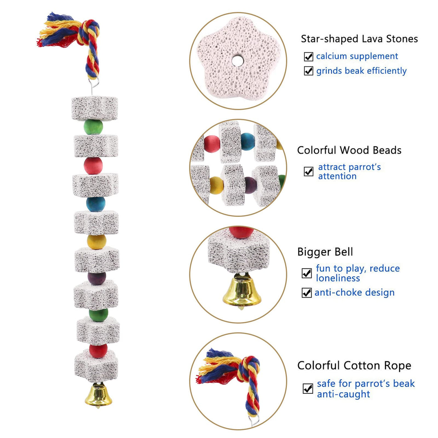 2 Pack Large Bird Chewing Toy, Parrot Beak Grinding Calcium Stone With Bells, Bird Cage Accessories, Cage Toys For Cockatiel Par