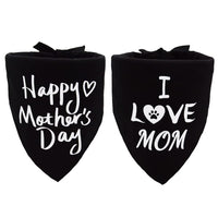 Q: What designs are featured on the bandanas?A: The bandanas feature lovely prints with 'Happy Mother’s Day' and 'I Love Mom' patterns in a stylish black color, allowing your pet to express their love for mom!