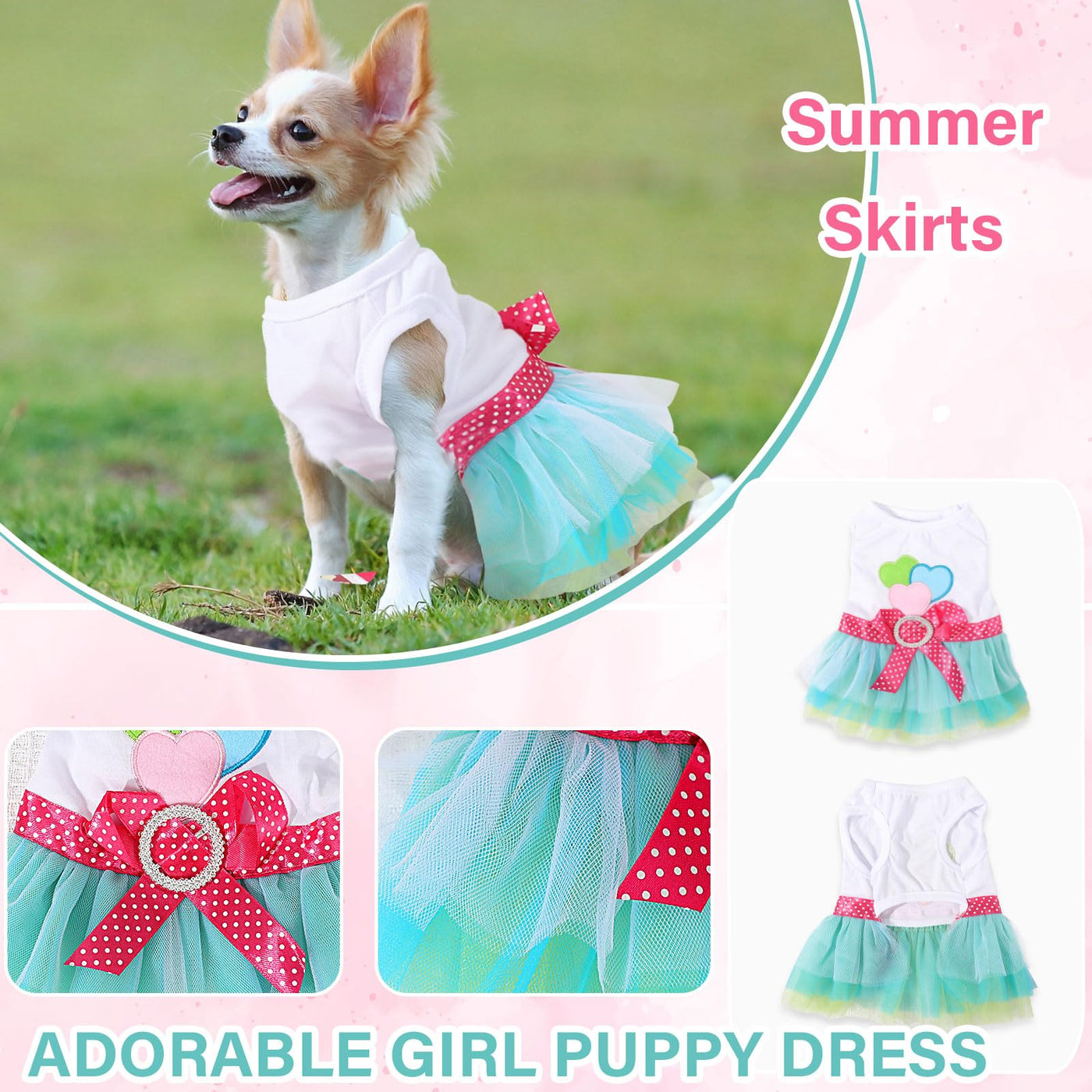 2 Pack Puppy Dresses For Small Dogs Girls Cute Princess Puppy Dresses With Rhinestones Tutu Pet Dress Outfit Female Dog Clothes