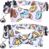 2 Pack/Set Cat Collar Breakaway With Cute Bow Tie And Bell For Kitty Adjustable Safety